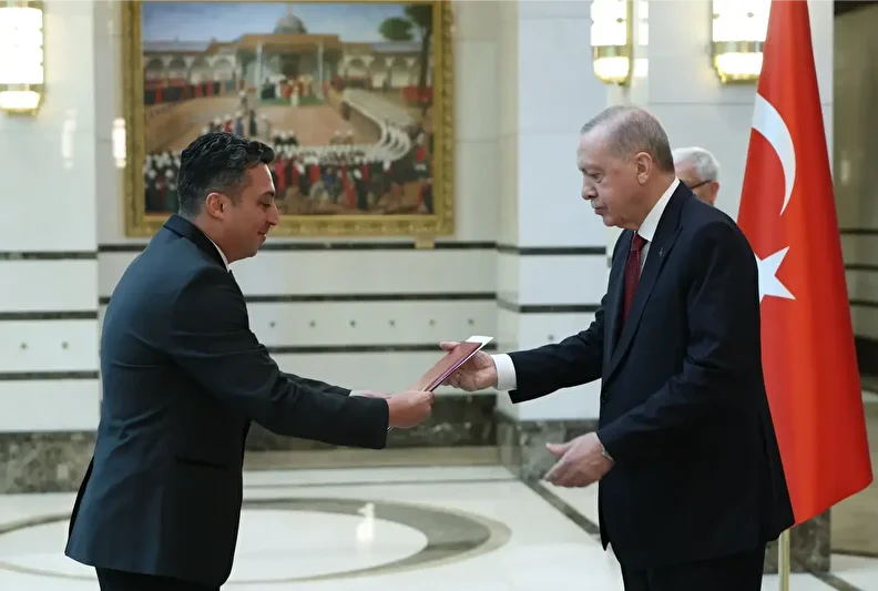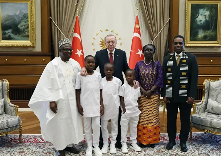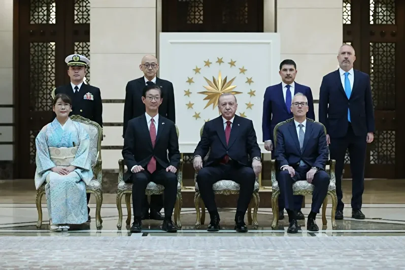 Cumhurbaşkanlığı Külliyesi'ndeki kabulde, Lübnan Büyükelçisi Munir Anuti, Gana Büyükelçisi Abdul Nasiruddin, Filistin Büyükelçisi Nasri Halil Salim Ebu Ceyş, Gine Büyükelçisi Abdulaye Fofana ve Japonya Büyükelçisi Masami Tamura, Cumhurbaşkanı Erdoğan'a güven mektuplarını sundu.