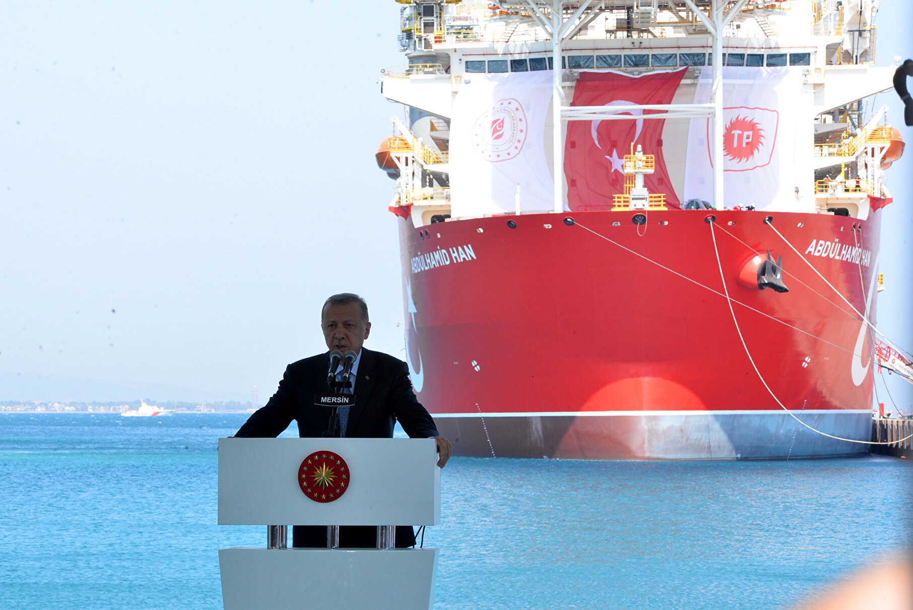 - Güney Kore'deki Okpo Limanı'ndan yola çıkıp 19 Mayıs'ta Mersin'in Taşucu Limanı'na ulaşan 4'üncü sondaj gemisi 'Abdülhamid Han, düzenlenen törenle Akdeniz’de görev yapacağı bölgeye uğurlandı. Törene Cumhurbaşkanı Recep Tayyip Erdoğan, Cumhurbaşkanı Yardımcısı Fuat Oktay, Cumhurbaşkanlığı Sözcüsü İbrahim Kalın, AK Parti Sözcüsü Ömer Çelik, Milli Savunma Bakanı Hulusi Akar, Enerji ve Tabi Kaynaklar Bakanı Fatih Dönmez, Tarım ve Orman Bakanı Vahit Kirişci, Cumhurbaşkanlığı İletişim Başkanı Fahrettin Altun ile milletvekilleri katıldı. Cumhurbaşkanı Erdoğan, tören öncesi helikopterle havadan inceleme yaptı. Erdoğan ardından gemiye binerek bilgi aldı.