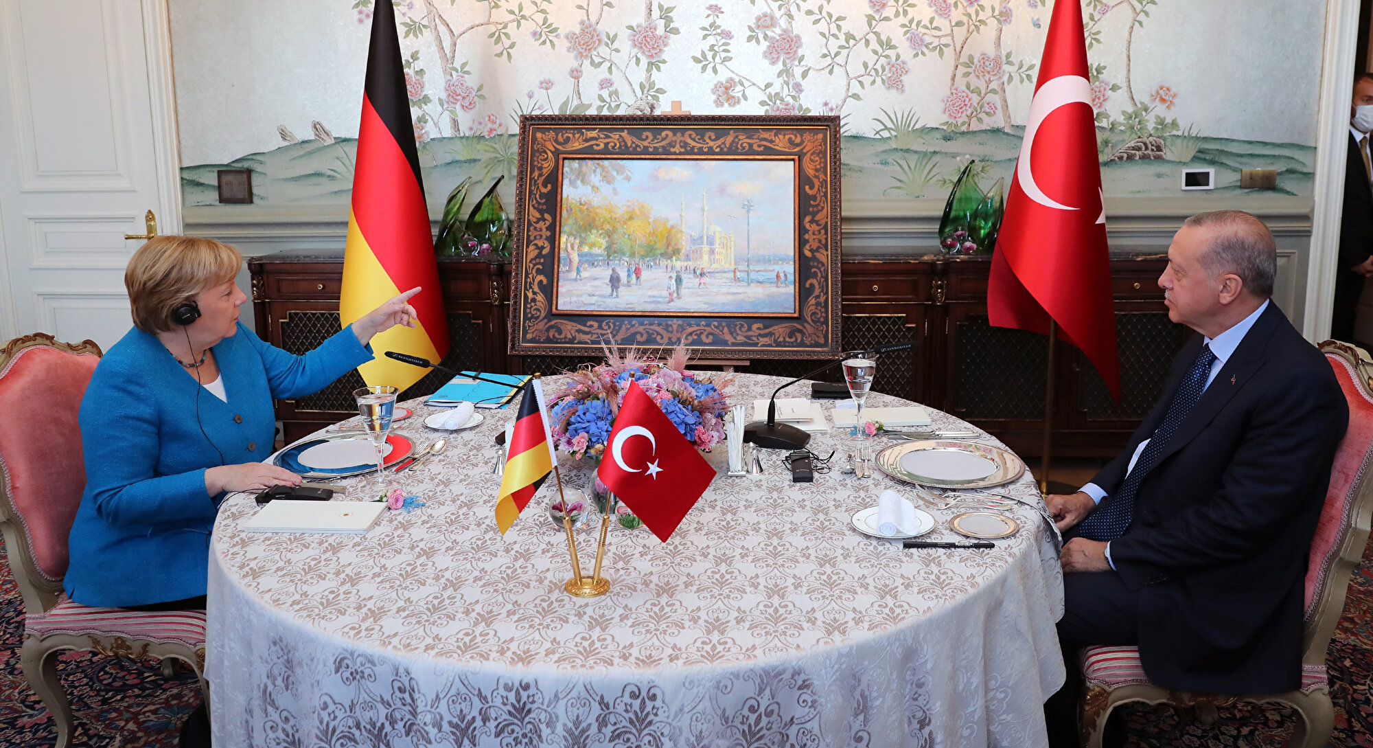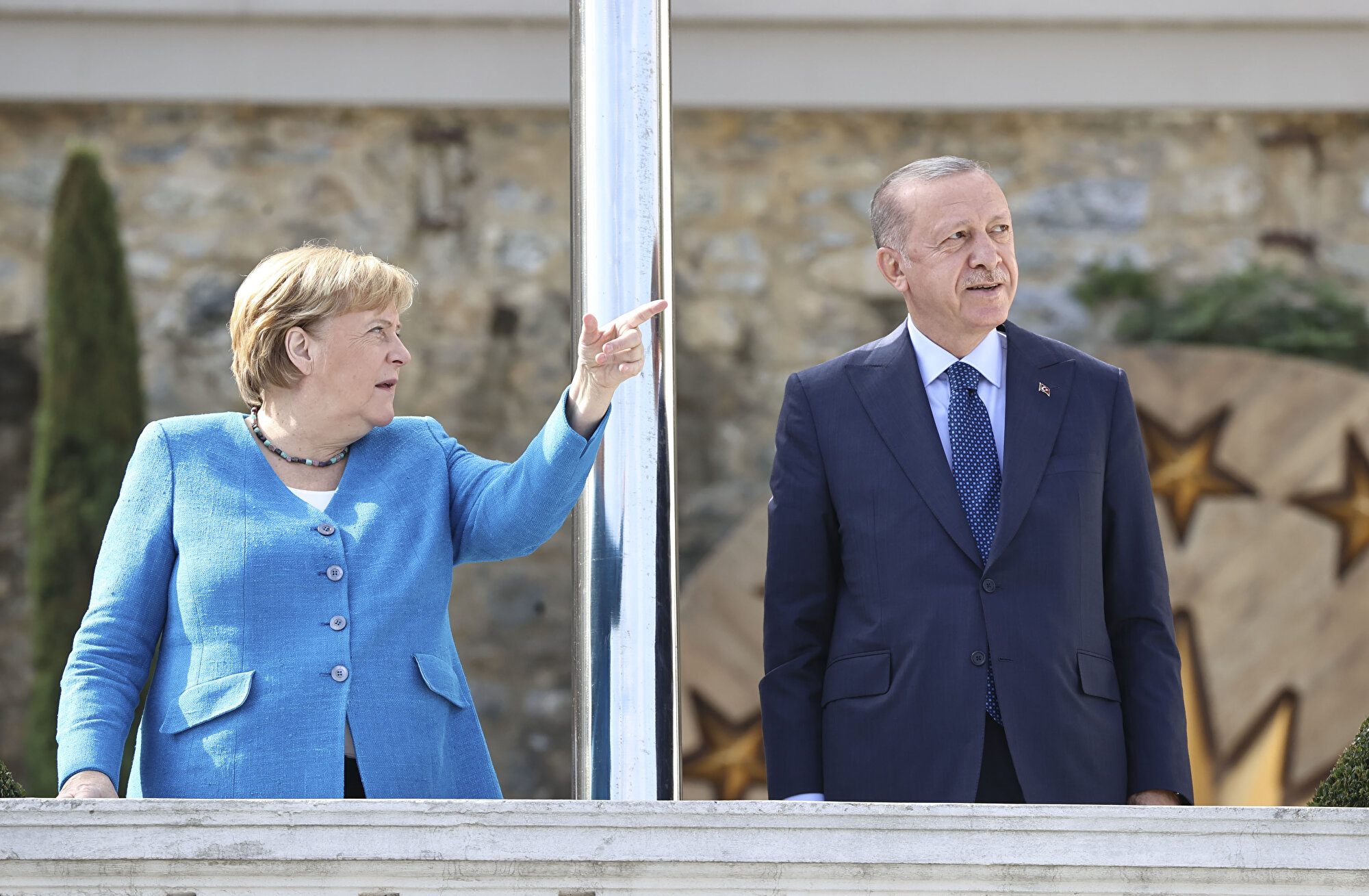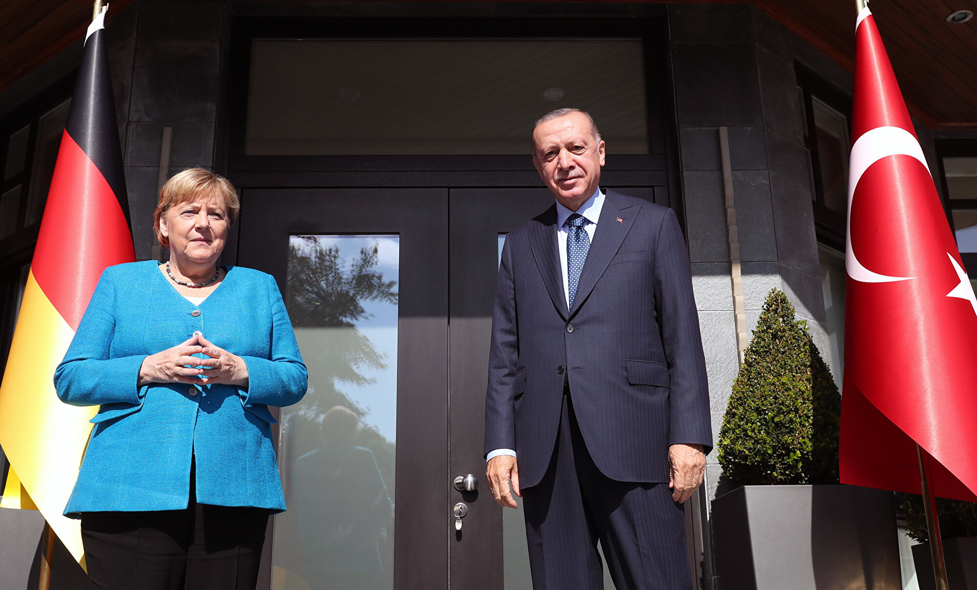 Almanya Başbakanı Angela Merkel, Türkiye Cumhurbaşkanı Recep Tayyip Erdoğan ile yapacağı görüşme için Huber Köşkü'ne geldi.