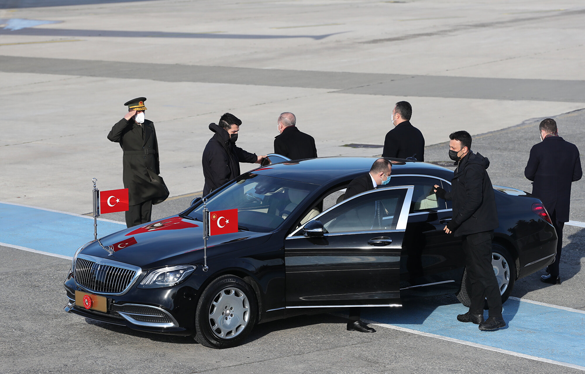 Erdoğan'a, Dışişleri Bakanı Mevlüt Çavuşoğlu, İçişleri Bakanı Süleyman Soylu, Çevre, Şehircilik ve İklim Değişikliği Bakanı Murat Kurum, Gençlik ve Spor Bakanı Mehmet Muharrem Kasapoğlu, Milli Savunma Bakanı Hulusi Akar ile Kültür ve Turizm Bakanı Mehmet Nuri Ersoy da eşlik etti.