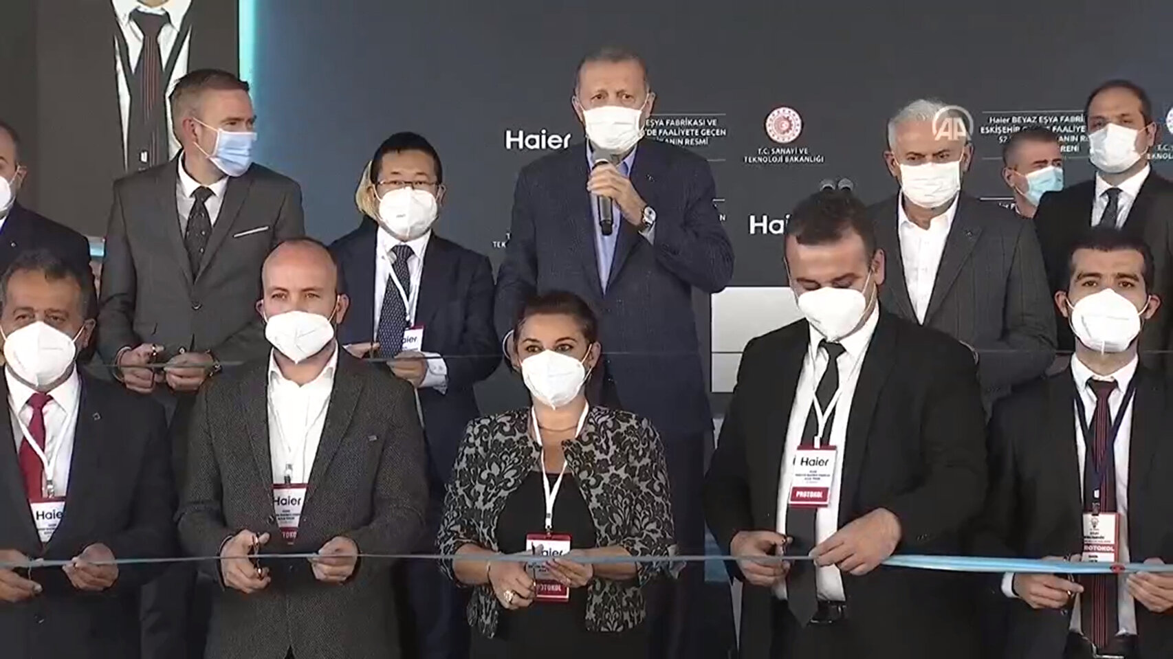 Konuşmasına katılımcıları selamlayarak başlayan Erdoğan, HAİER Beyaz Eşya Fabrikası ve Eskişehir OSB'de koronavirüs salgını döneminde faaliyete geçen 52 yeni fabrika ile altyapı yatırımlarının resmi açılış töreni vesilesiyle bir arada olunduğunu belirtti.