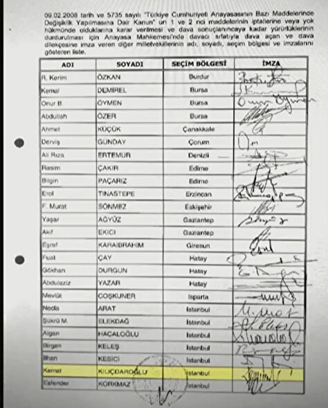Kılıçdaroğlu'nun riyâkarlığını belgelerle gözler önüne seren Cumhurbaşkanı Erdoğan şunları söyledi: "Ülkemizin değerlerine, kültürüne karşı olan CHP faşizmi; darbecilerle el ele vererek önümüze böyle bir sorun çıkarmıştır. Zorlama yorumlarla, ülkemiz bu tartışmaların içine sokulmuş, insanlarımız mağdur edilmiştir. Aynı zihniyet 1960 darbesini yaptırdıktan sonra siyasi iktidarı rahatça ele geçirebilmek için Menderes'i idama götürmüştür. Biz 2008 yılında MHP ile birlikte mecliste başörtüsü tartışmalarını kökten çözecek anayasa değişikliği yapmıştık. Bunu 411 el kaosa kalktı manşetiyle duyurmuşlardı. Ancak iptali için bunu AYM'ye götüren bizzat Kılıçdaroğlu'nun kendisiydi."