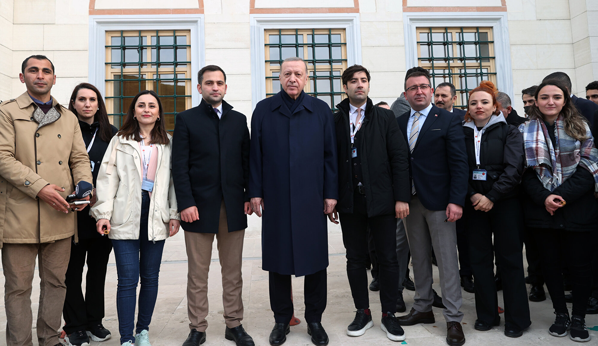 Cumhurbaşkanı Erdoğan konuşmasının ardından, basın mensuplarına çikolata ikram ederek bayramlarını tebrik etti. Erdoğan, cami avlusunda kendisine çiçek takdim eden bir grup çocukla da bayramlaştı.