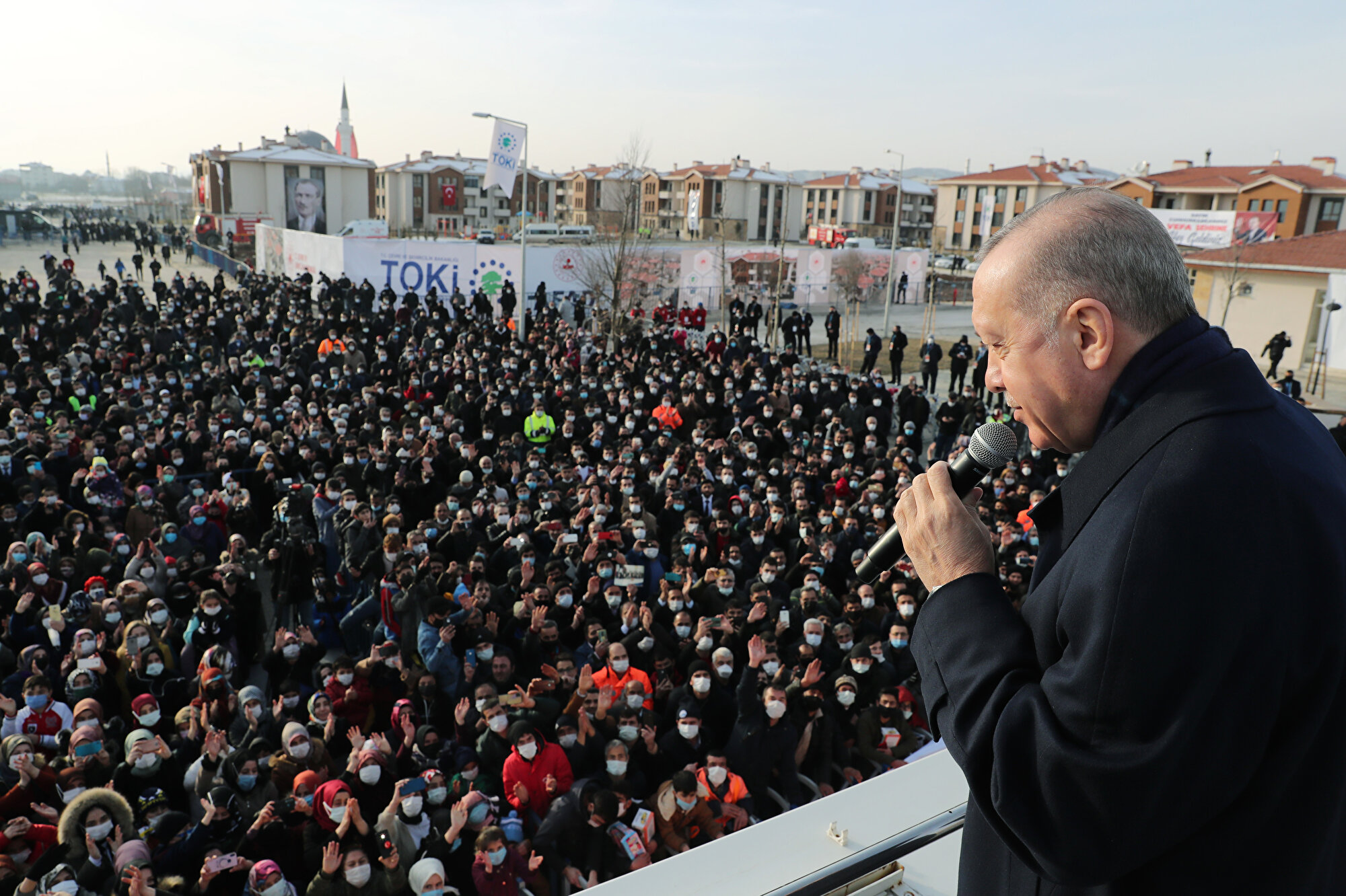 Türkiye sadece TOKİ vasıtasıyla 1 milyona yakın depreme dayanıklı binaya kavuştu. Sadece son birkaç senede 1,5 milyon konutun dönüşümünü tamamladık. Milyonlarca insanımızın güvenliğini sağladık. İstanbul'daki kentsel dönüşüm çalışmaları 10 milyon metrekareyi alana yayılmış bulunuyor. Hedefimiz 1,5 milyon konutu acilen önümüzdeki 5 yılda tamamlamaktır.