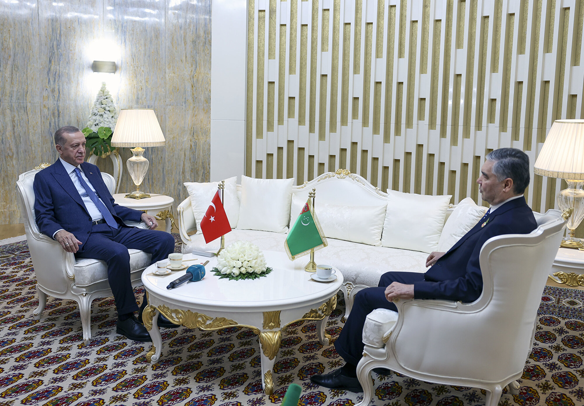 Cumhurbaşkanı Erdoğan, zirve kapsamında ilk görüşmesini Türkmenistan Ulusal Konseyi Halk Maslahatı Başkanı Gurbangulu Berdimuhamedov ile yaptı.