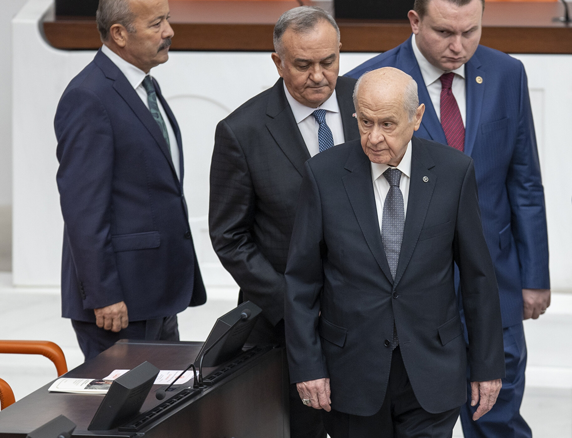 Liderlerden CHP Genel Başkanı Kemal Kılıçdaroğlu, MHP Genel Başkanı Devlet Bahçeli, HDP Eş Genel başkanları Mithat Sancar ve Pervin Buldan salonda hazır bulundu.