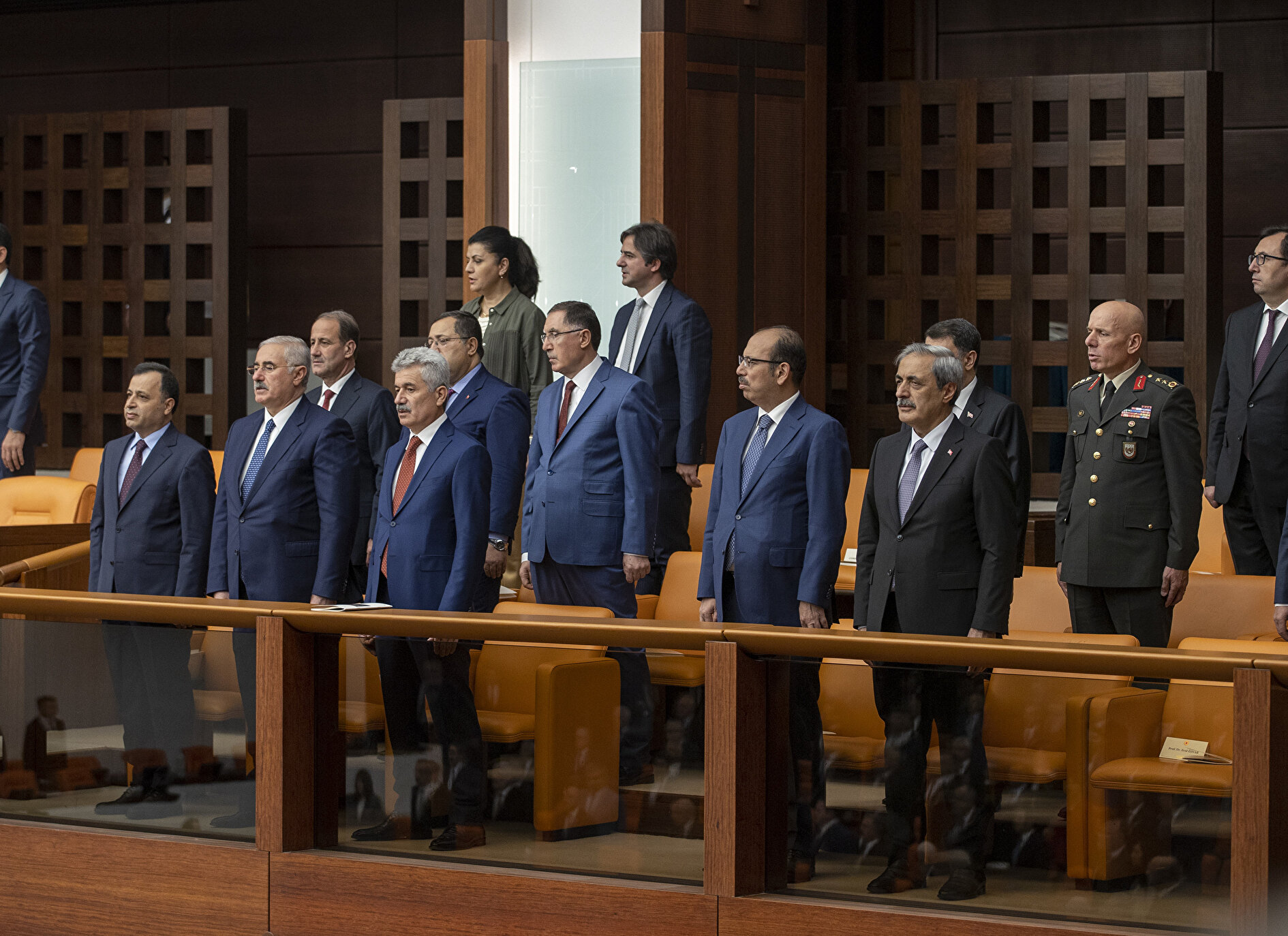 Genel Kurul toplantısına, Cumhurbaşkanı Yardımcısı Fuat Oktay, Adalet Bakanı Bekir Bozdağ, Aile ve Sosyal Hizmetler Bakanı Derya Yanık, Çalışma ve Sosyal Güvenlik Bakanı Vedat Bilgin, Enerji ve Tabii Kaynaklar Bakanı Fatih Dönmez, Gençlik ve Spor Bakanı Mehmet Muharrem Kasapoğlu, Hazine ve Maliye Bakanı Nureddin Nebati, İçişleri Bakanı Süleyman Soylu, Milli Savunma Bakanı Hulusi Akar, Milli Eğitim Bakanı Mahmut Özer, Sanayi ve Teknoloji Bakanı Mustafa Varank, Sağlık Bakanı Fahrettin Koca, Tarım ve Orman Bakanı Vahit Kirişci, Ticaret Bakanı Mehmet Muş, Ulaştırma ve Altyapı Bakanı Adil Karaismailoğlu, Genelkurmay Başkanı Orgeneral Yaşar Güler ve TSK komuta kademesi, İletişim Başkanı Fahrettin Altun, Cumhurbaşkanlığı Sözcüsü İbrahim Kalın, Kamu Başdenetçisi (Ombudsman) Şeref Malkoç, Savunma Sanayii Başkanı İsmail Demir ile Ankara Valisi Vasip Şahin katıldı.