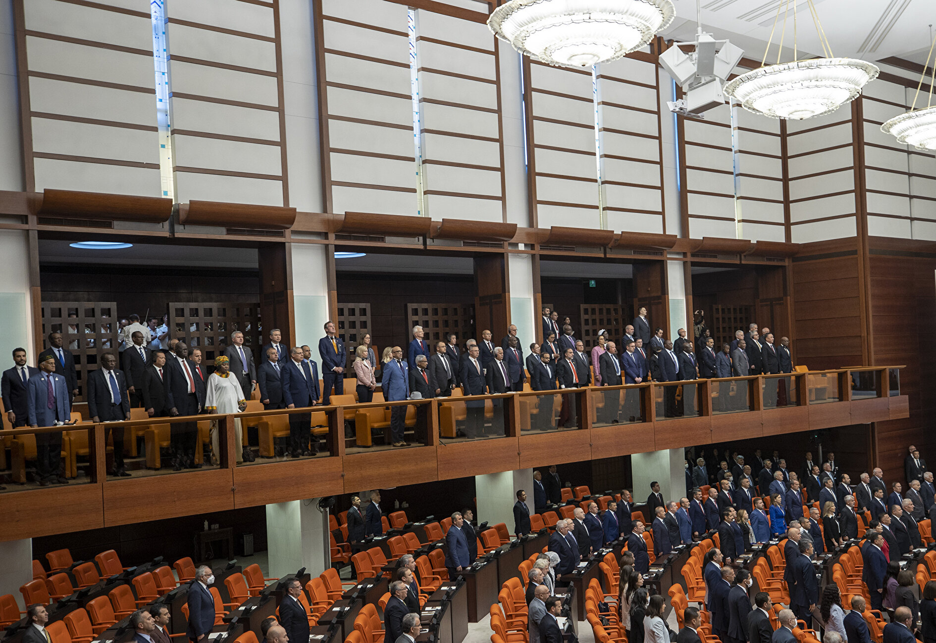 Toplantıyı, Anayasa Mahkemesi Başkanı Zühtü Arslan, Yargıtay Başkanı Mehmet Akarca, Danıştay Başkanı Zeki Yiğit, Sayıştay Başkanı Metin Yener, eski TBMM başkanları Bülent Arınç ve Cemil Çiçek ile yabancı misyon temsilcileri de izledi.