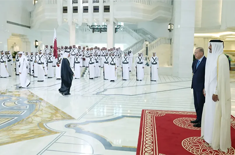 Cumhurbaşkanı Erdoğan, iki ülke marşlarının okunduğu törende karşılama kıtasını selamladı. Erdoğan ve Katar Emiri Al Thani, resmi törenin ardından ikili görüşmeye geçti.