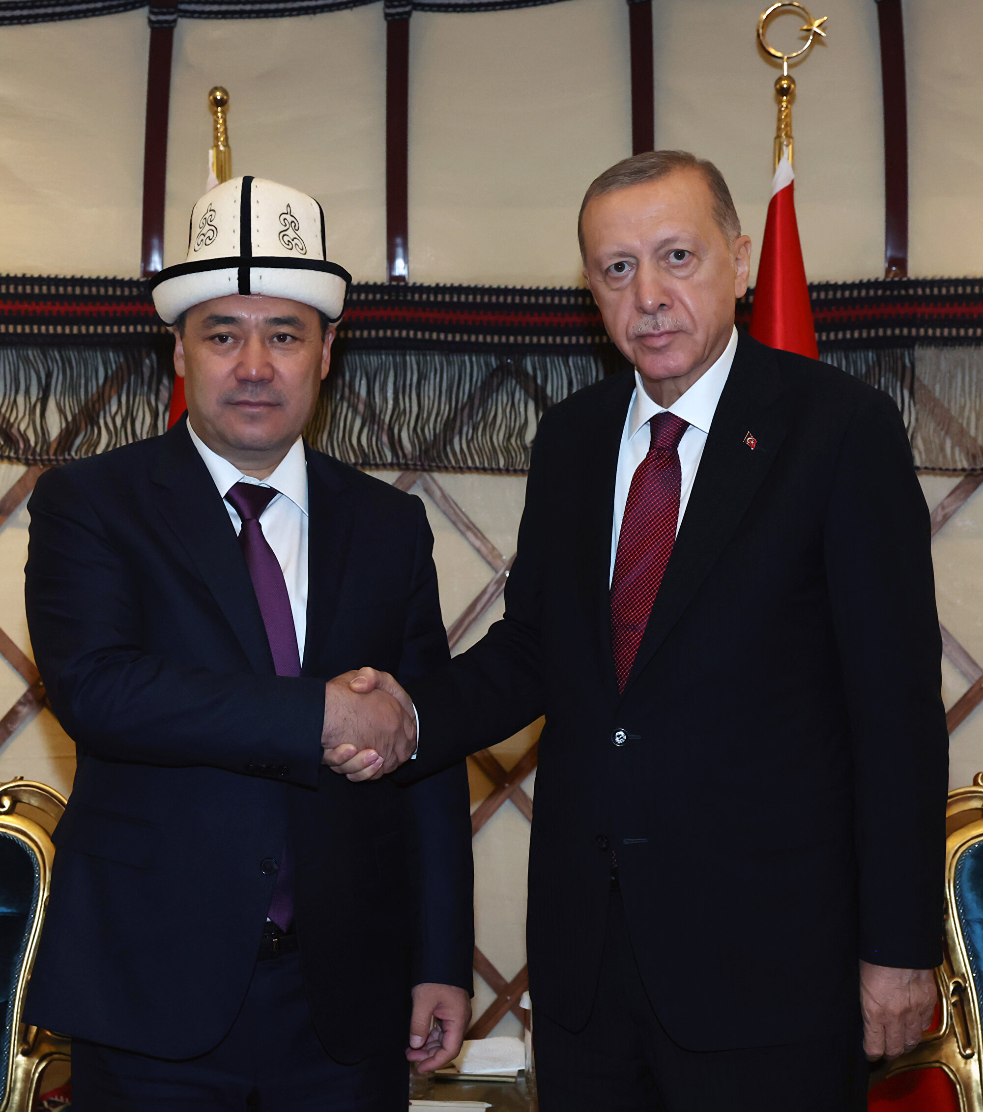 Cumhurbaşkanı Recep Tayyip Erdoğan, 4. Dünya Göçebe Oyunları kapsamında İznik'e gelen Kırgızistan Cumhurbaşkanı Sadır Caparov ve KKTC Cumhurbaşkanı Ersin Tatar ile görüştü.