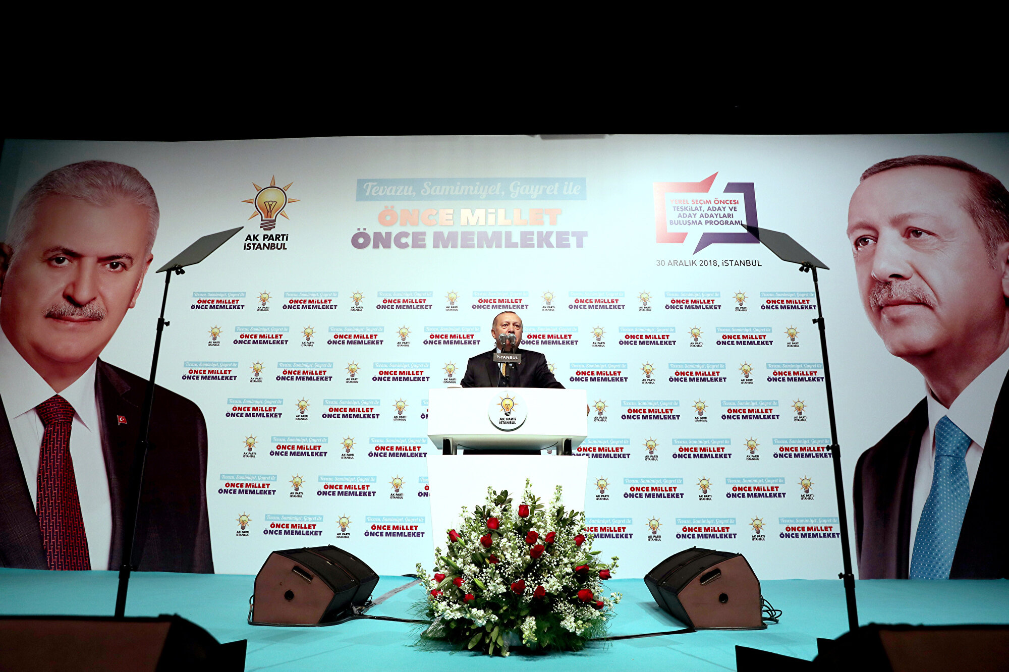 Erdoğan, AK Parti'nin İstanbul Büyükşehir Belediye Başkan adayı olarak TBMM Başkanı Binali Yıldırım'ı, CHP'de ise böyle bir ufkun olmadığını, ilçe belediye başkanını aday gösterdiğini anlattı.