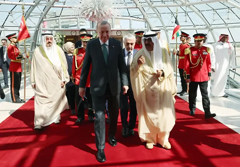 Cumhurbaşkanı Recep Tayyip Erdoğan, resmi ziyarette bulunmak üzere gittiği Kuveyt'te, Kuveyt Emiri Meşal el-Ahmed el-Cabir es-Sabah tarafından resmi törenle karşılandı. Erdoğan ve es-Sabah törenin ardından ikili ve heyetler arası görüşmelerin gerçekleştirileceği Bayan Sarayı'na geçti.
