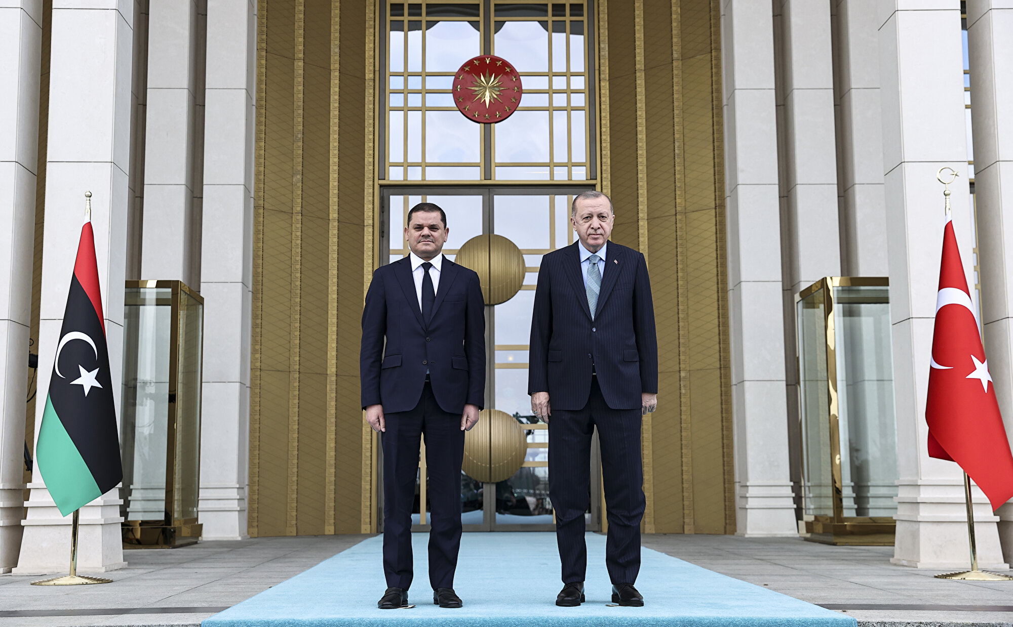 Libya Milli Birlik Hükümeti Başbakanı Abdülhamid Dibeybe, Cumhurbaşkanı Recep Tayyip Erdoğan'ın daveti üzerine, Türkiye'ye resmi ziyarette bulunuyor. Cumhurbaşkanı Erdoğan, Libya Milli Birlik Hükümeti Başbakanı Dibeybe'yi resmi törenle karşıladı.