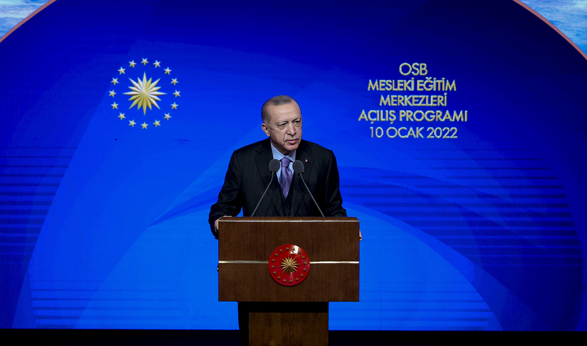 Cumhurbaşkanı Recep Tayyip Erdoğan, Beştepe Millet Kongre ve Kültür Merkezi'nde düzenlenen "Organize Sanayi Bölgeleri Mesleki Eğitim Merkezleri Açılış Programı"nda konuştu.