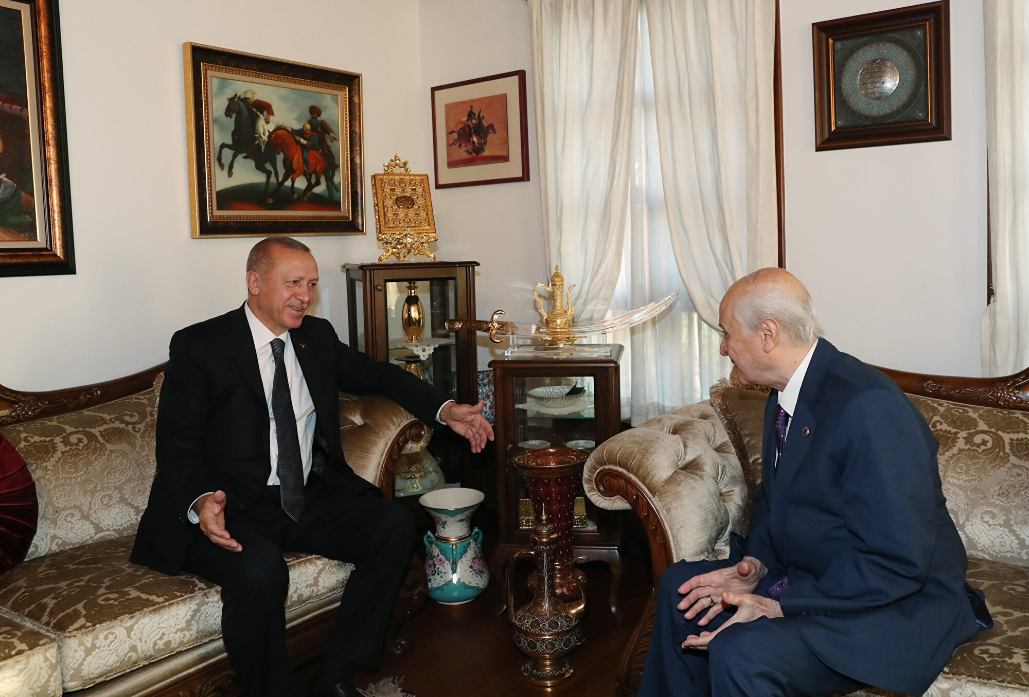 Türkiye Cumhurbaşkanı Recep Tayyip Erdoğan, MHP Genel Başkanı Devlet Bahçeli'yi evinde ziyaret etti.