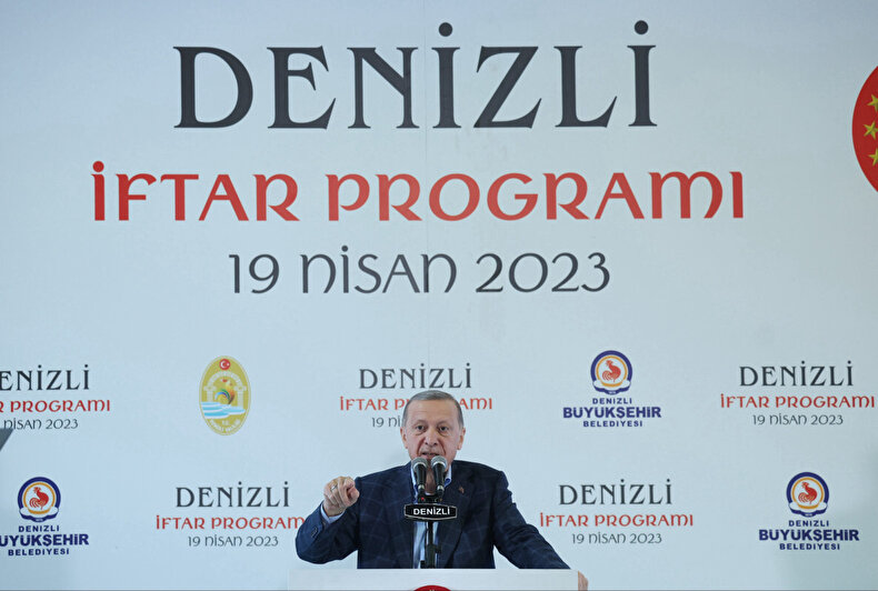 "Rabbim bizlere, Türkiye'yi CHP zihniyetinin boyunduruğundan kurtarmayı, vesayetçilerin milli iradeye vurdukları zincirleri tek tek kırmayı nasip etti. Rabbim bizlere, 86 yıllık hasretin ardından Ayasofya'yı yeniden asli kimliğine kavuşturmayı, Ezanı Muhammedilerle buluşturmayı nasip etti. Rabbim bizlere, Büyük Çamlıca Camii gibi, Taksim Camii gibi, Beştepe Millet Camii gibi nice sembol ibadethaneyle ülkemizi nakış nakış süslemeyi nasip etti. Şimdi de Barbaros Hayrettin Paşa Camiini Levent'te elhamdülillah inşa ettik ve bayramdan sonra da orayı açacağız. Barbaros Hayrettin oradan Boğaz'a leventleriyle kadırgalarını sürdü. Biz de şimdi Barbaros Hayrettinlerin izinden yolumuza devam ediyoruz. Rabbim bizlere, ülkemizdekilerle beraber tüm mağdur ve mazlumların elinden tutmayı nasip etti. Rabbim bizlere, Türkiye'nin iyilik sancağını, şefkat ve merhamet bayrağını dünyanın dört köşesine ulaştırmayı nasip etti. Rabbim bizlere, on yıllardır kendi öz yurdunda horlanan, hor görülen, değerleri aşağılanan bu necip millete öz güven kazandırmayı nasip etti. Rabbim bizlere, ülkemizin kronik sorunlarını çözmeyi, vatandaşımızın sıkıntılarına çözüm bulmayı nasip etti. Rabbim bizlere, son 21 yılda sadece Denizli'ye hemen her alanda 66,3 milyar lira yatırım yapmayı nasip etti."