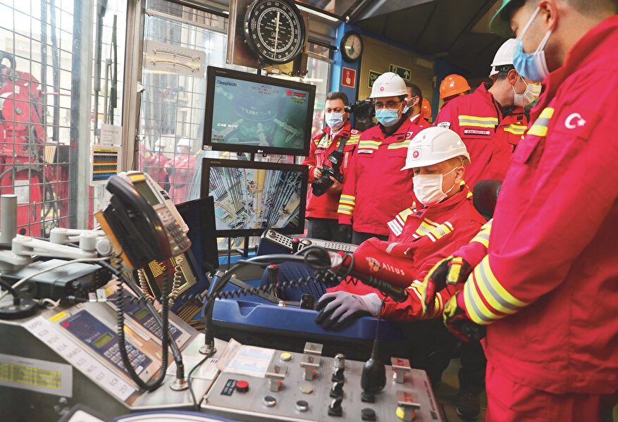Erdoğan, halen Yavuz sondaj gemisinin, Barbaros Hayrettin ve Oruç Reis sismik araştırma gemileriyle birlikte Akdeniz’de faaliyetlerini sürdürdüğünü ifade ederek, “Kanuni sondaj gemimiz Karadeniz’deki sondaj faaliyeti için yola çıktı. Yıl sonuna kadar fiilen kuyu açmaya başlayacak. Hepsi de Türkiye Petrolleri Anonim Ortaklığı’na ait sondaj gemilerimiz, dünyadaki toplam derin deniz sondaj filosunun yaklaşık yüzde 20’sini oluşturuyor. Sismik araştırma gemilerimiz de kendi alanlarının en modern donanımlarına sahiptir. Fatih sondaj gemimiz, ekipmanın ve ekibin millileştirilmesi yolunda önemli bir adımdı. Şimdi yeni bir adım daha atarak uzaktan kumandalı ileri teknoloji ürünü denizaltı robotumuzu da yerli ve milli imkanlarla petrol sektörümüze kazandırdık. ‘Kaşif’ adını verdiğimiz bu denizaltı robotu sayesinde yüzlerce metre derinlikteki ihtiyaç duyulan elektrik ihtiyacını ve video görüntülerini uzaktan kumandayla hiçbir riske girmeden elde edebileceğiz. Denizaltı robotumuzun ülkemize hayırlı olmasını diliyorum” dedi.