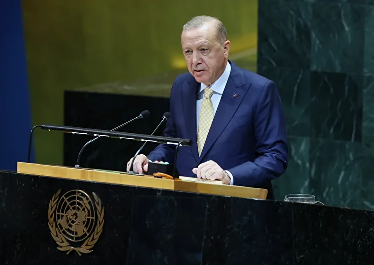 Cumhurbaşkanı Recep Tayyip Erdoğan, BM Genel Kurulu'nda düzenlenen Filistin meselesine çözüm konferansında açıklamalarda bulundu. Filistin davasının bütün dünyanın kabulünde olduğunu vurgulayan Erdoğan, "Netanyahu hükümeti aynı toprağı, suyu, havayı, denizi paylaştığı binlerce yıllık komşularına soykırım uyguluyor." dedi. "Netanyahu'nun amacı, Filistin Devleti'nin kurulmasını imkansız hale getirmek" diyen Erdoğan, "Bir grup ülkenin Filistin Devleti'ni tanıma kararı alması son derece önemli, tarihi bir karardır." ifadelerini kullandı.