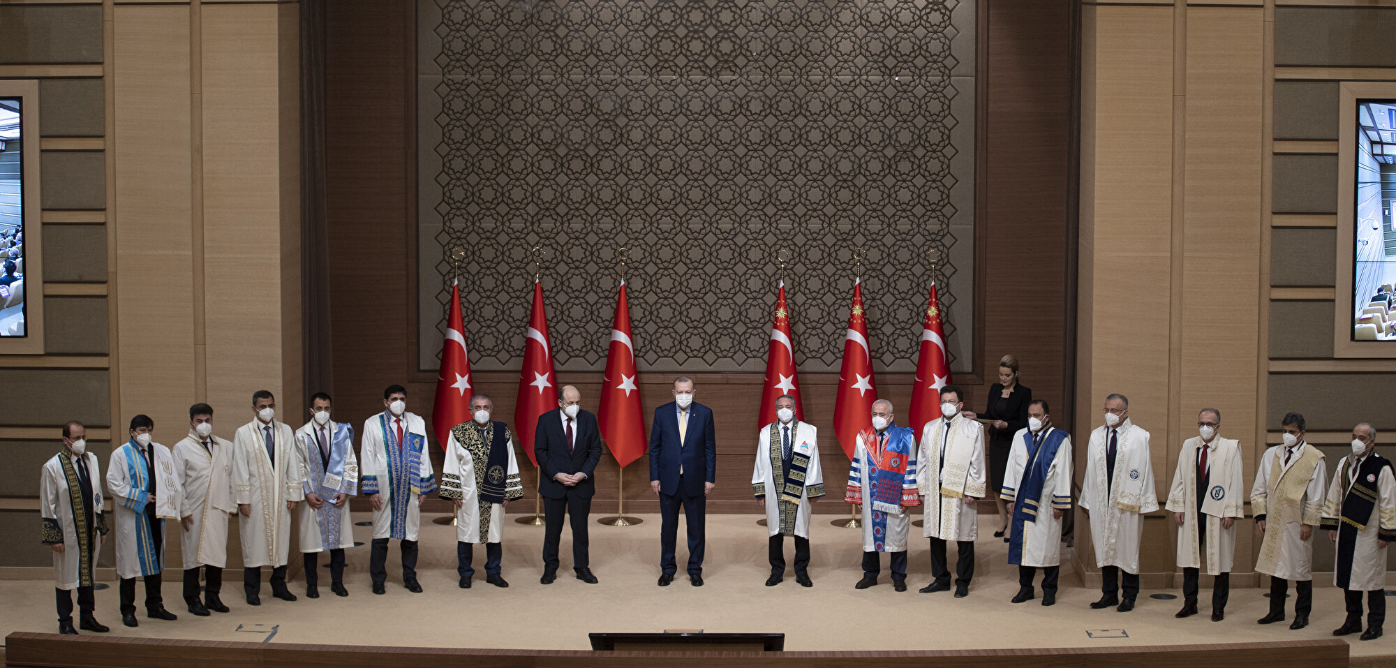 Yükseköğretimde temel amaçlarının eğitim kurumlarının kalite odaklı faaliyetler yürütmesi, kalkınmada kritik rolü olan bilimsel alanların desteklenmesi olduğunu söyleyen Cumhurbaşkanı Erdoğan, “Tek tipçi anlayıştan uzaklaşan üniversitelerimiz farklı değerler üretir hale gelerek birbirinin kopyası olmaktan çıkmıştır. Gerçi hala eski Türkiye’nin alışkanlıkları ile devletten ve toplumdan kopuk bir şekilde inşa ettikleri hükümranlık alanlarını korumanın peşinde olan yok değil. Bunlar da var. Ama inşallah onlar da adım adım bu ülkenin üniversitesi olduklarını, bu millete hizmet etmekle mükellef olduklarını anlayacaklar. Kendi kişisel ve zümrevi çıkarlarını demokrasi ve özgürlük maskesi altında pazarlayanların gerçek yüzlerini ortaya dökmeyi sürdüreceğiz” diye konuştu.