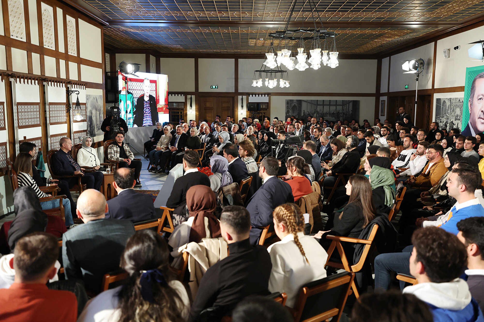 Programda sohbet ettiği gençleri Cumhurbaşkanlığı Külliyesi'ne davet eden Erdoğan, "Millet Kütüphanesi'ne hayran kalacaksınız." diye konuştu.