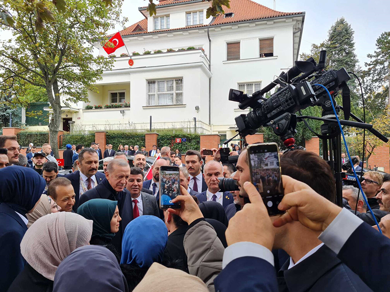 Cumhurbaşkanı Erdoğan daha sonra Türkiye'nin Prag Büyükelçiliğini ziyaret etti.
