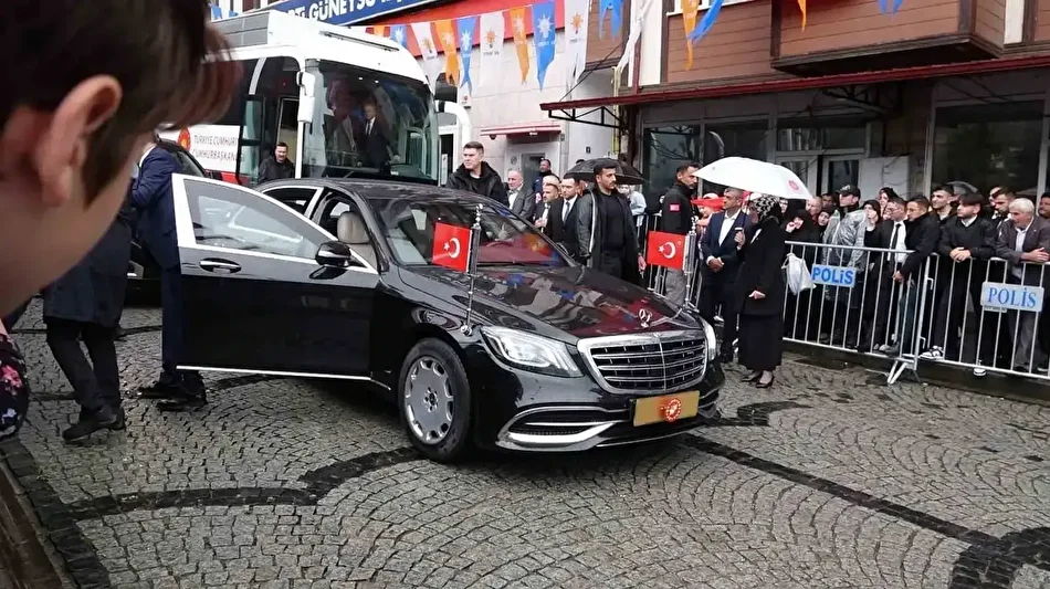 Havanın yağışlı ve fırtınalı olması nedeniyle helikopter yerine Güneysu ilçesinden kara yolu ile Trabzon’a doğru yola çıkan Erdoğan, hareket öncesi ilçe merkezinde kendisini bekleyen hemşehrileri ile vedalaştı, çocuklara harçlık dağıttı.