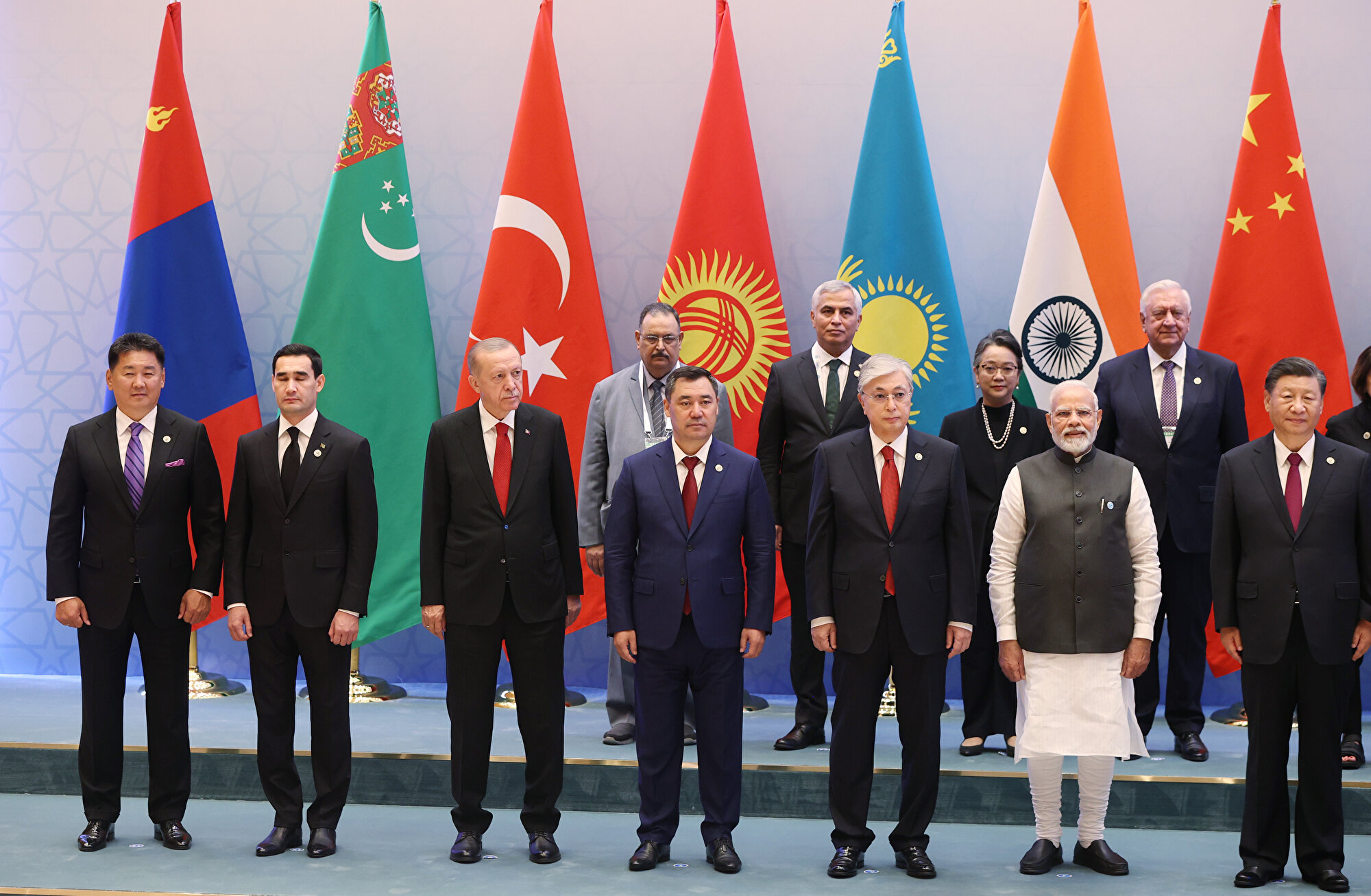 Özbekistan'da bulunan Cumhurbaşkanı Recep Tayyip Erdoğan, Şanghay İşbirliği Örgütü Zirvesi öncesinde Özbekistan Cumhurbaşkanı Şevket Mirziyoyev tarafından karşılandı ve aile fotoğrafı çekiminde yer aldı.