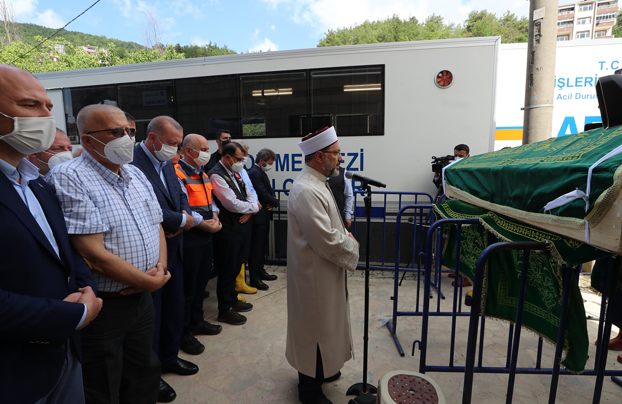 Sel felaketinin yaşandığı Kastamonu'nun Bozkurt ilçesinde, hayatını kaybedenler için cenaze töreni düzenlendi. Bugün bölgeye giden Cumhurbaşkanı Recep Tayyip Erdoğan da düzenlenen cenaze törenine katıldı.