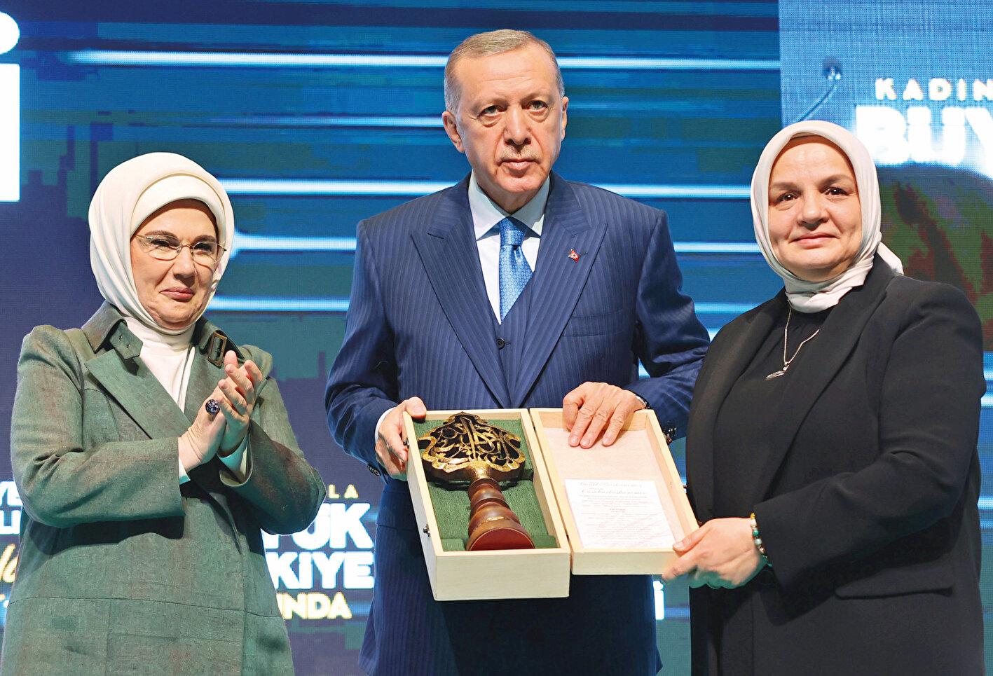 Kadınlara daha fazla destek vermekte kararlı olduklarını ifade eden Erdoğan, “Kadınlarımız başta olmak üzere reel sektörümüze bir de müjde vermek istiyorum. Hazine destekli kefalet sistemiyle firmalarımıza tahsis edilen kredilerin 200 milyar liralık kaynakla daha etkin kullanımını sağlayacak yeni bir adım attık. Yeterli teminata sahip olmayan ama kredibilitesi yüksek firmalarımıza en az yüzde 75 oranında Hazine destekli kefalet sağlıyoruz. Kadın girişimcilerimize ve kadın kooperatiflerimize de 2 milyar liralık kefalet paketi tahsis ettik” dedi.