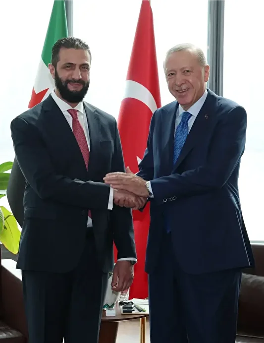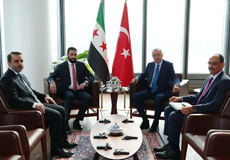 Cumhurbaşkanı Recep Tayyip Erdoğan, New York'taki Türkevi'nde Suriye Cumhurbaşkanı Ahmed Şara'yı kabul etti. Görüşmede, Suriye Dışişleri Bakanı Esad Şeybani ile MİT Başkanı İbrahim Kalın da yer aldı. SDG'nin 10 Mart Mutabakatına uyması gerektiğini, Türkiye'nin bölgedeki gelişmeleri takip ettiğini vurgulayan Erdoğan, Suriye'ye desteklerin artarak süreceğini belirtti.