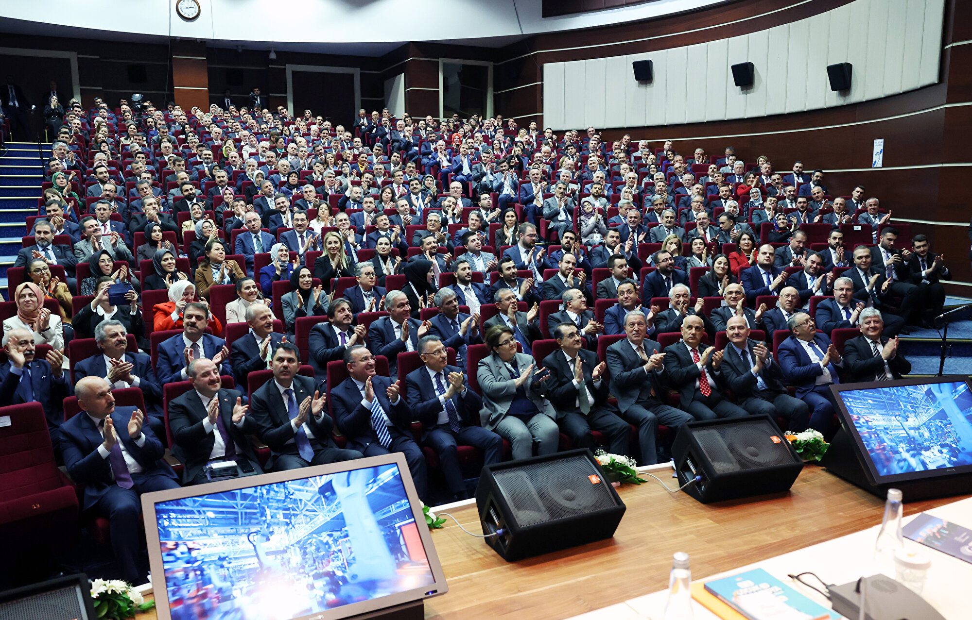Erdoğan, muhalefet partilerinin temsilcilerinin, yapılamayacağını iddia ettiği bazı yatırım ve düzenlemelerin hayata geçirildiğini gösteren bir video izletti.