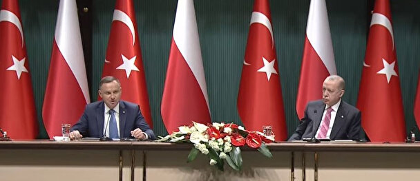 Erdoğan ve Polonya Cumhurbaşkanı Andrzej Sebastian Duda, baş başa ve heyetler arası görüşmelerinin ardından Cumhurbaşkanlığı Külliyesi'nde ortak basın toplantısı düzenledi.