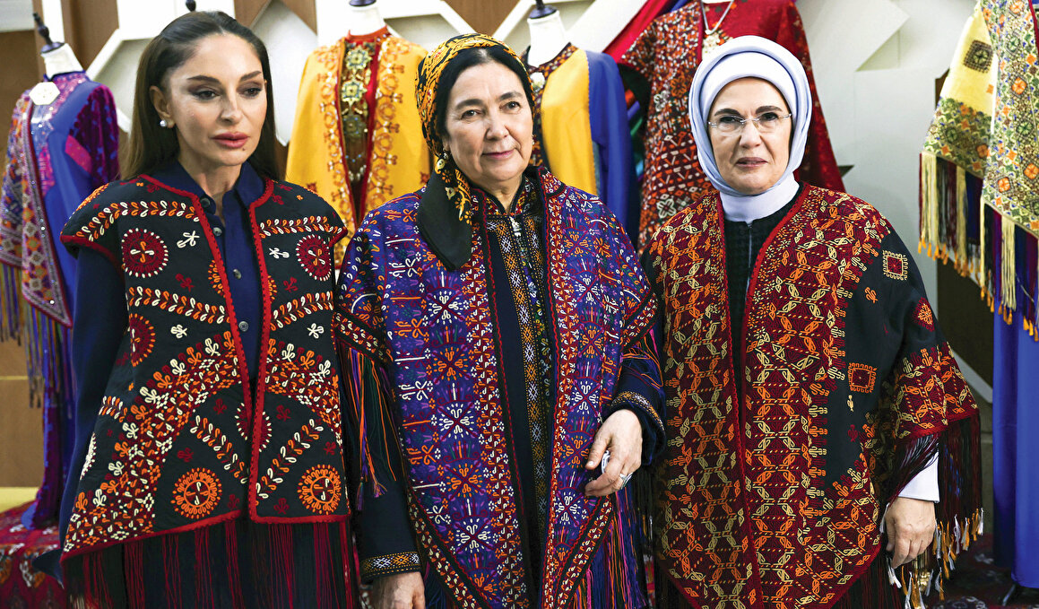 Cumhurbaşkanı Erdoğan’ın eşi Emine Erdoğan, Azerbaycan Cumhurbaşkanı İlham Aliyev’in eşi Mihriban Aliyeva ve Türkmenistan Halk Meclisi Başkanı Kurbankulu Berdimuhamedov’un eşi Oğulgerek Berdimuhamedova ile Türkmen El Sanatları Sergisi’ni gezdi. Emine Erdoğan ve beraberindekiler takılar, dokuma kilim ve halılar ile Türkmen sanatçılar tarafından yapılmış resimlerin bulunduğu sergi alanını gezdi. Emine Erdoğan ile Oğulgerek Berdimuhamedova, bir dokuma tezgahının başına geçerek tezgahtaki kilime ilmek attı.