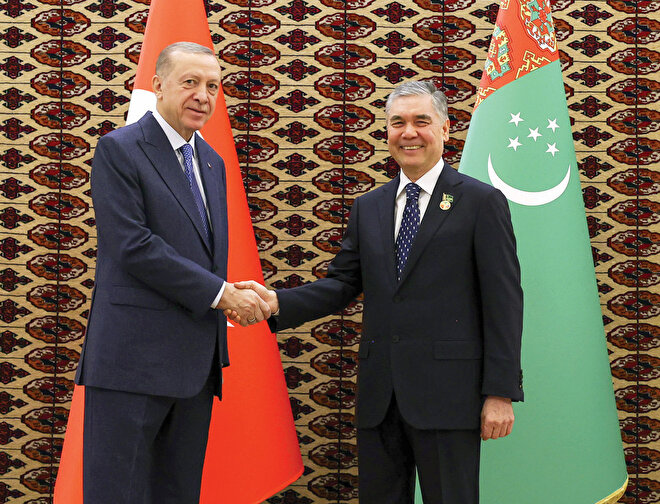 - Gurbangulu Berdimuhamedov, Erdoğan’la görüşmesi sonrasında diplomatik ilişkilerin tesisinde 30 senenin dolduğunu hatırlatarak bu kapsamda çok işler yaptıklarını, “üçlü kardeşler” olarak da çok işler yapacaklarına inandıklarını ifade etti. Dünya siyasetinde 3 kardeş ülke olarak dünya barışı ve refahı için ekonomik olarak global derecede devam eden birçok işi sürdürebilmeyi temenni eden Berdimuhamedov, özellikle hidrokarbon kaynakları kullanmada, enerjide, elektrik enerjisinde ve transit geçişinde üçlü ilişkileri geliştirmek istediklerini belirtti.
