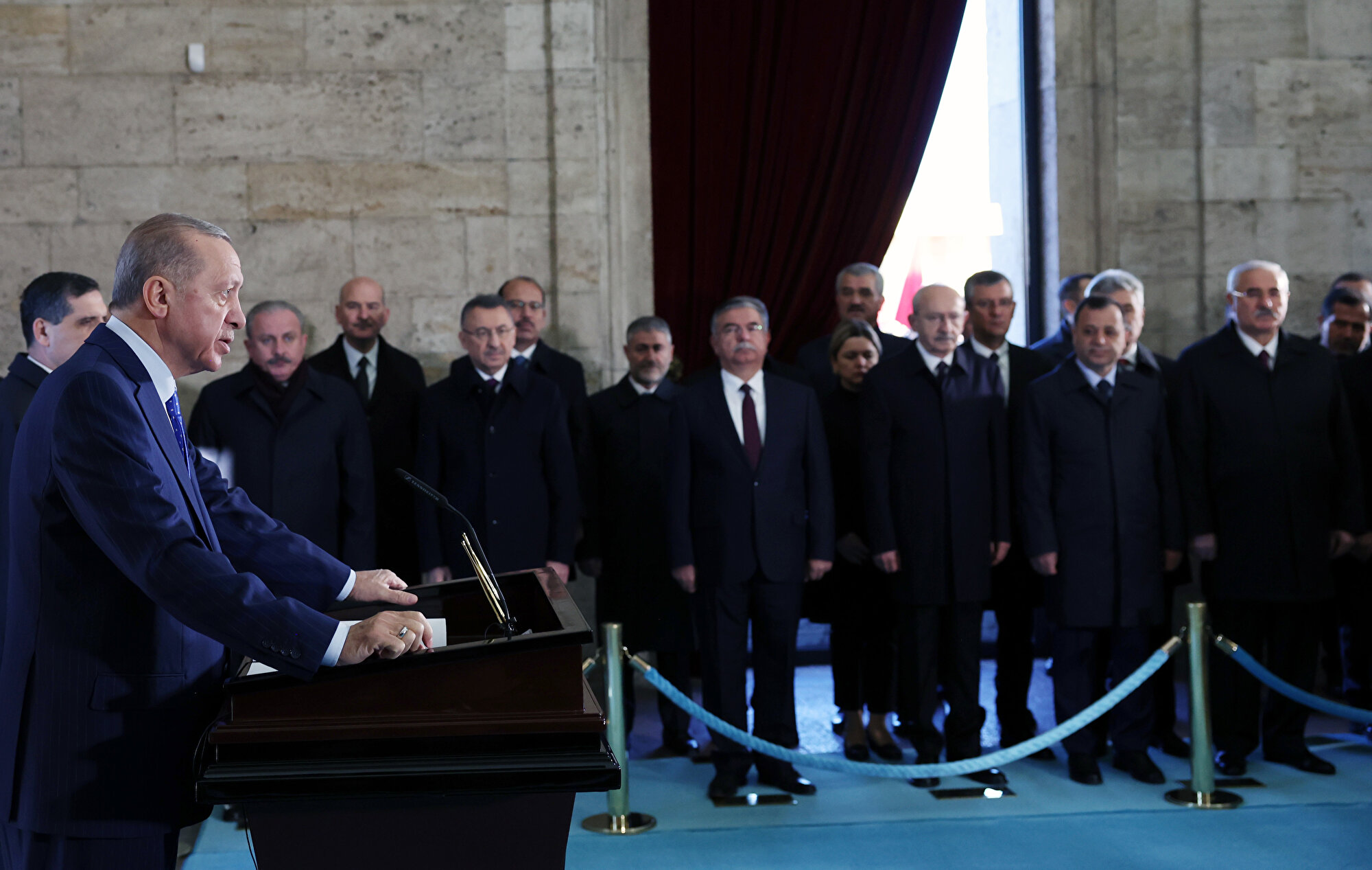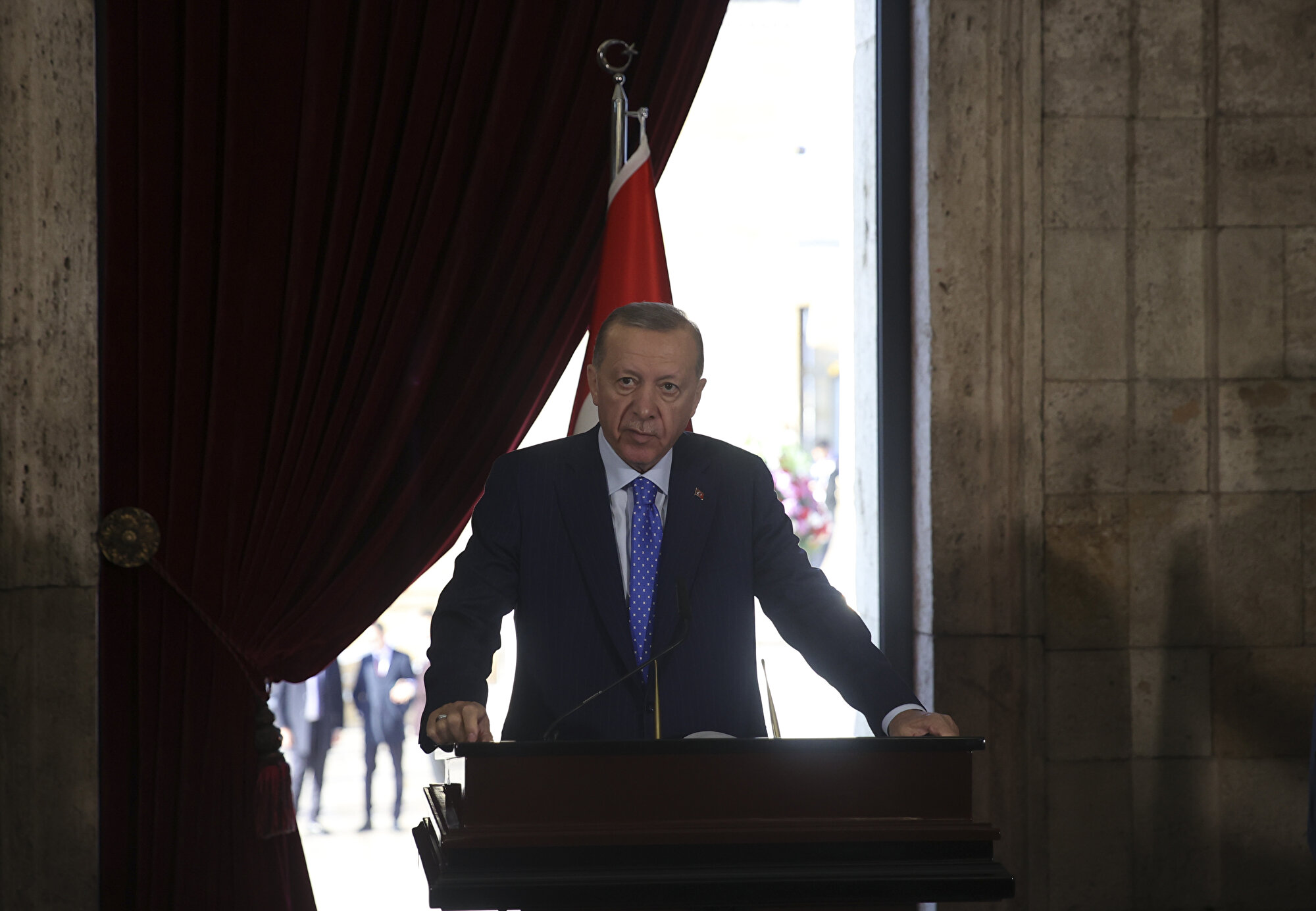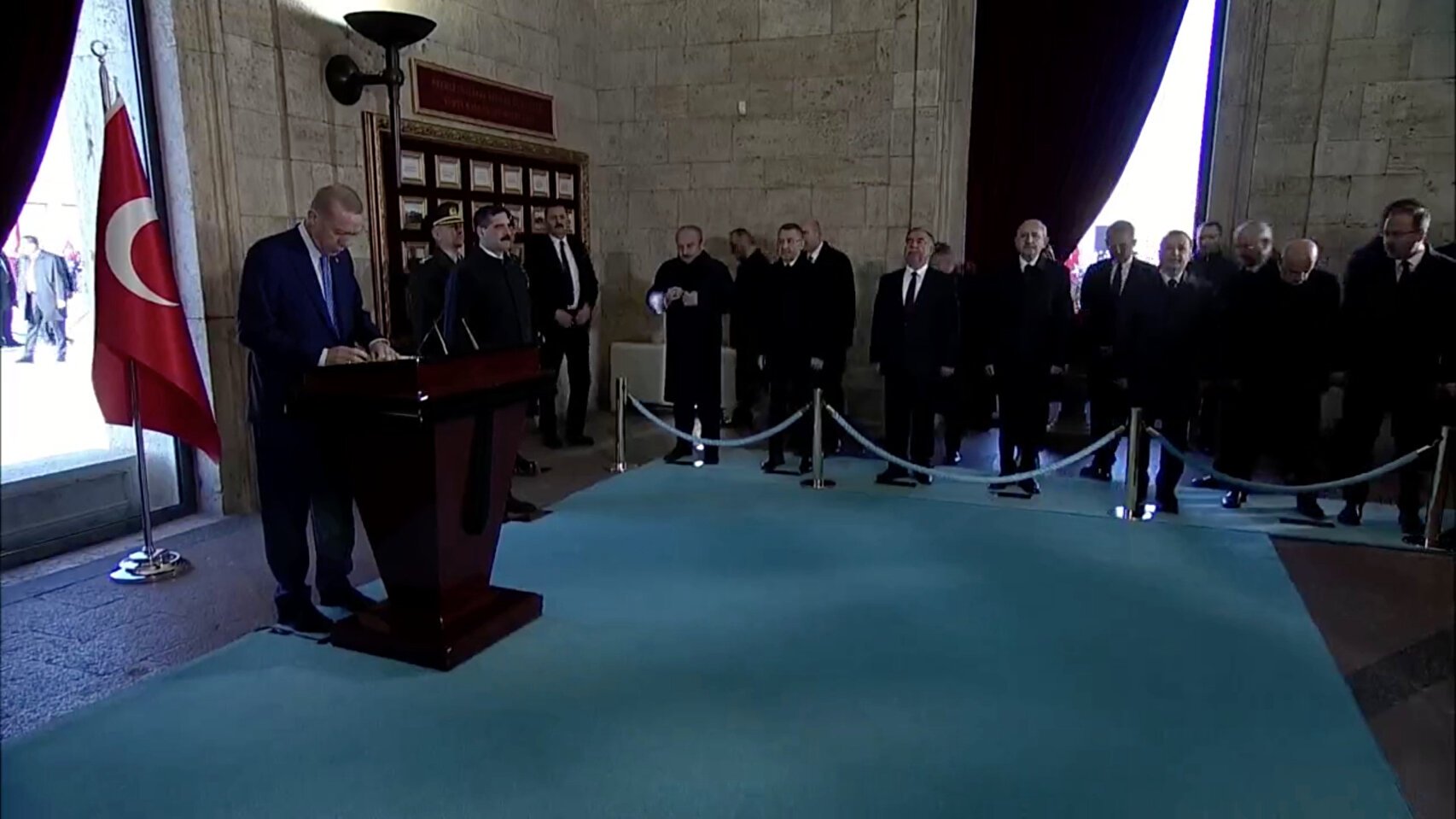 - Cumhurbaşkanı Erdoğan, daha sonra Misak-ı Milli Kulesi'ne geçerek Anıtkabir Özel Defteri'ni imzaladı. Erdoğan, şunları yazdı;