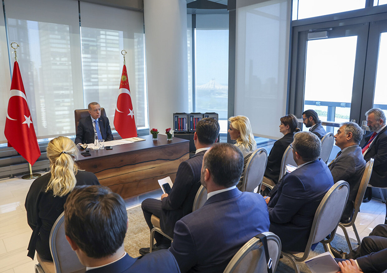 Cumhurbaşkanı Recep Tayyip Erdoğan, ABD ziyareti sonunda New York’taki Türkevi’nde Yeni Şafak Genel Yayın Yönetmeni Hüseyin Likoğlu ve TVNET Genel Müdür Yardımcısı Serhat İbrahimoğlu'nun da aralarında bulunduğu basın mensuplarının sorularını yanıtladı. Birleşmiş Milletler 77. Genel Kurulu genel görüşmelerinin son derece verimli ve yoğun bir ziyaretodluğunu belirten Erdoğan, "Çeşitli vesilelerle Amerika’daki vatandaşlarımızla bir araya gelmeye bilhassa önem verdik. Burada faaliyet gösteren Türk sivil toplum kuruluşu temsilcileriyle buluştuk, hasbihal ettik. Türk-Amerikan Ulusal Yönlendirme Komitesi tarafından organize edilen yemekte vatandaşlarımızla kucaklaştık. Tüm temaslarımda vatandaşlarımızın 2023 seçimlerini coşkuyla beklediklerini müşahede etmekten büyük bir mutluluk duydum" dedi.