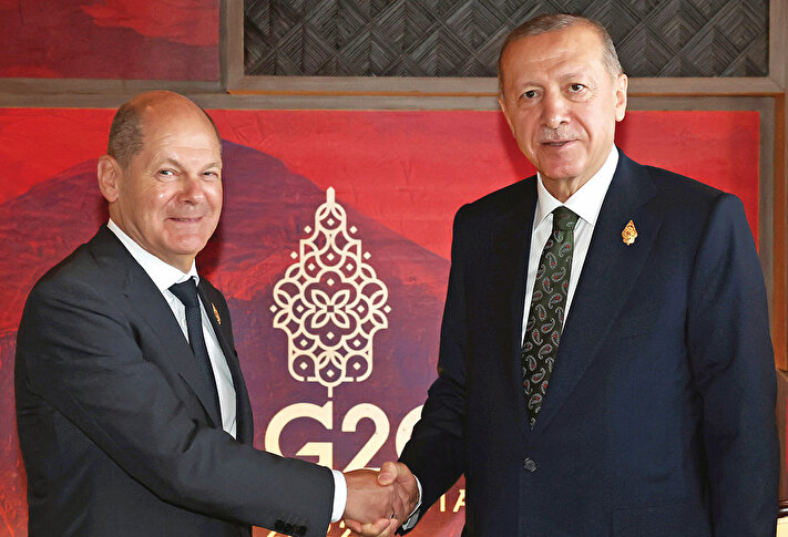 - Cumhurbaşkanı Recep Tayyip Erdoğan, G20 Liderler Zirvesi için bulunduğu Endonezya’nın Bali adasında yoğun bir diplomasi trafiği yürüttü. Erdoğan’ın Bali’deki ilk teması, zirveye ev sahipliği yapan Endonezya’nın Devlet Başkanı Joko Widodo ile oldu. Zirvenin düzenlendiği Apurva Kempinski’de, Widodo ile görüşen Erdoğan, G20 Liderler Zirvesi’nin birinci oturumu öncesinde ise liderlerle ayaküstü sohbet etti. Cumhurbaşkanı Erdoğan, Çin Devlet Başkanı Şi Cinping, Hindistan Başbakanı Narendra Modi, Fransa Cumhurbaşkanı Emmanuel Macron, Birleşik Arap Emirlikleri (BAE) Devlet Başkanı Muhammed bin Zayid Al Nahyan ile ayrı ayrı sohbet etti. Erdoğan, İtalya Başbakanı Giorgia Meloni ile de seçilmesinin ardından ilk kez görüştü. Cumhurbaşkanı Erdoğan, zirve kapsamında ABD Başkanı Joe Biden ile ikili görüşme gerçekleştirdi. Erdoğan, Macron ile de bir araya geldi. Liderler, tahıl koridoru için Erdoğan’a teşekkür etti. Cumhurbaşkanı Erdoğan, Almanya Başbakanı Olaf Scholz, İtalya Başbakanı Meloni ve Suudi Arabistan Veliaht Prensi Muhammed Bin Selman ile de ikili görüşmeler gerçekleştirdi.
