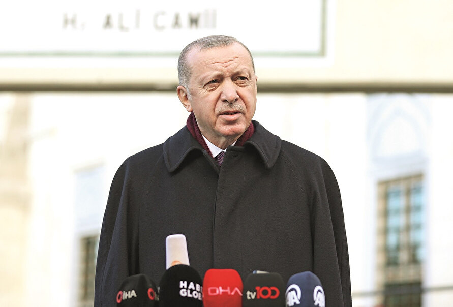 Cumhurbaşkanı Erdoğan cuma namazını kıldığı Hazreti Ali Camii’nden çıkışta, basın mensuplarının gündeme ilişkin sorularını yanıtladı. AB Liderler Zirvesi’nin sonuçları sorulan Erdoğan, AB’nin dün yaptığı zirvenin aslında birkaç ülkenin beklentilerine bekledikleri cevabı vermediğini söyledi. Erdoğan, “Çünkü talepleri haklı değildi. Talepleri aslında, Türkiye’nin haklılığını ortaya koyan bir sürecin tam aksineydi. Doğu Akdeniz’deki gelişmeler, bizim bütün bunlar karşısındaki olumlu tavırlarımız, bunların beklediklerini boşa çıkardı” diye konuştu. Erdoğan, “Sağ olsun AB üyesi ülkeler içerisinde aklıselim sahibi ülkeler burada olumlu tavırlar ortaya koyarak, bu oyunu boşa çıkardılar. Şimdi Mart 2021’de yapılacak olan zirvede yeni bir hazırlığın yapılması gibi, orada bu işin müzakere edilmesi gibi bir beklenti var. Şunu çok açık, net söylemek durumdayım, oradan da herhangi bir şey çıkması mümkün değil. Çünkü Türkiye için haklı olan bir süreç var. Türkiye için bu süreç içerisinde de hakkımızın teslim edilmesi gerekiyor” dedi.