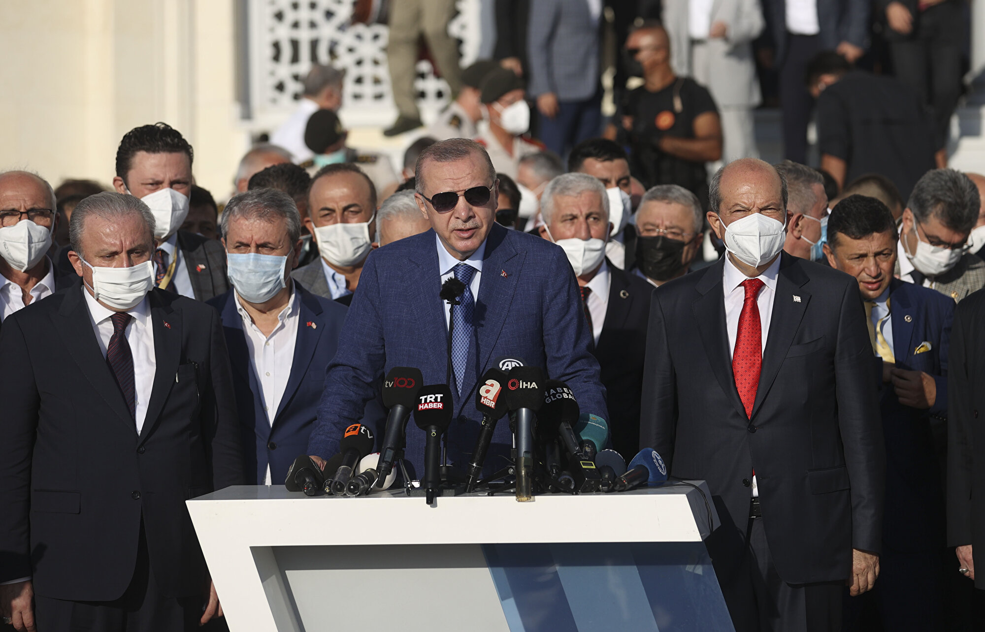 Cumhurbaşkanı Erdoğan, Kurban Bayramı namazını Lefkoşa'daki Hala Sultan Cami'sinde kıldı. Cumhurbaşkanı Erdoğan, cami çıkışında basın açıklaması yaptı. Erdoğan "Artık 'Kuzey-Güney' demek istemiyoruz, artık Kıbrıs Türkü diyoruz, olaya böyle bakıyoruz, bundan sonra da böyle devam ettireceğiz." ifadelerini kullandı.