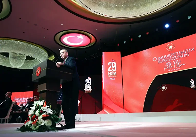 Cumhurbaşkanı Recep Tayyip Erdoğan, Cumhurbaşkanlığı Külliyesi Sergi Salonu'nda düzenlenen 29 Ekim Özel Programı'ndaki konuşmasına, tüm vatandaşların 29 Ekim Cumhuriyet Bayramını tebrik ederek başladı.
