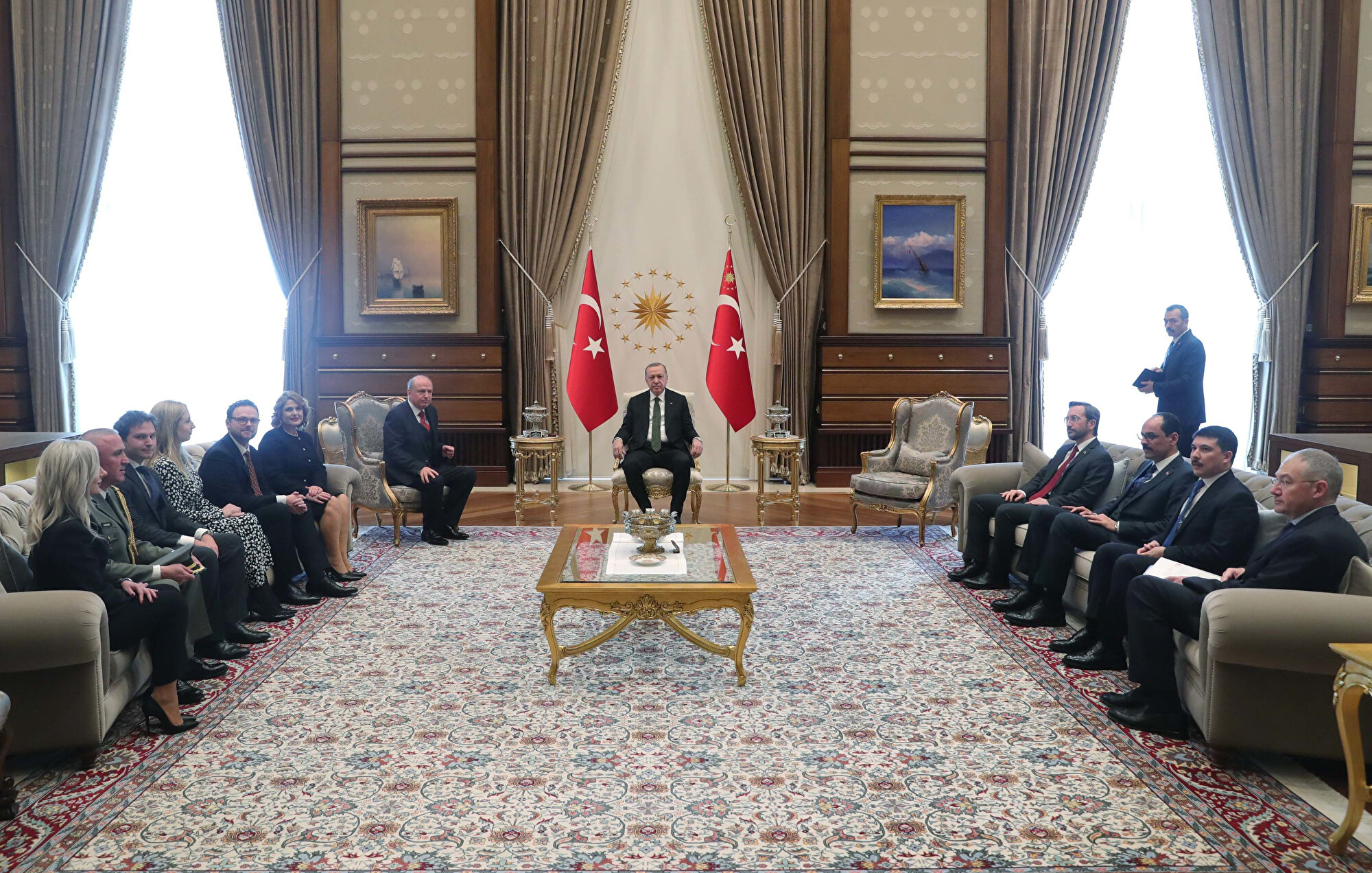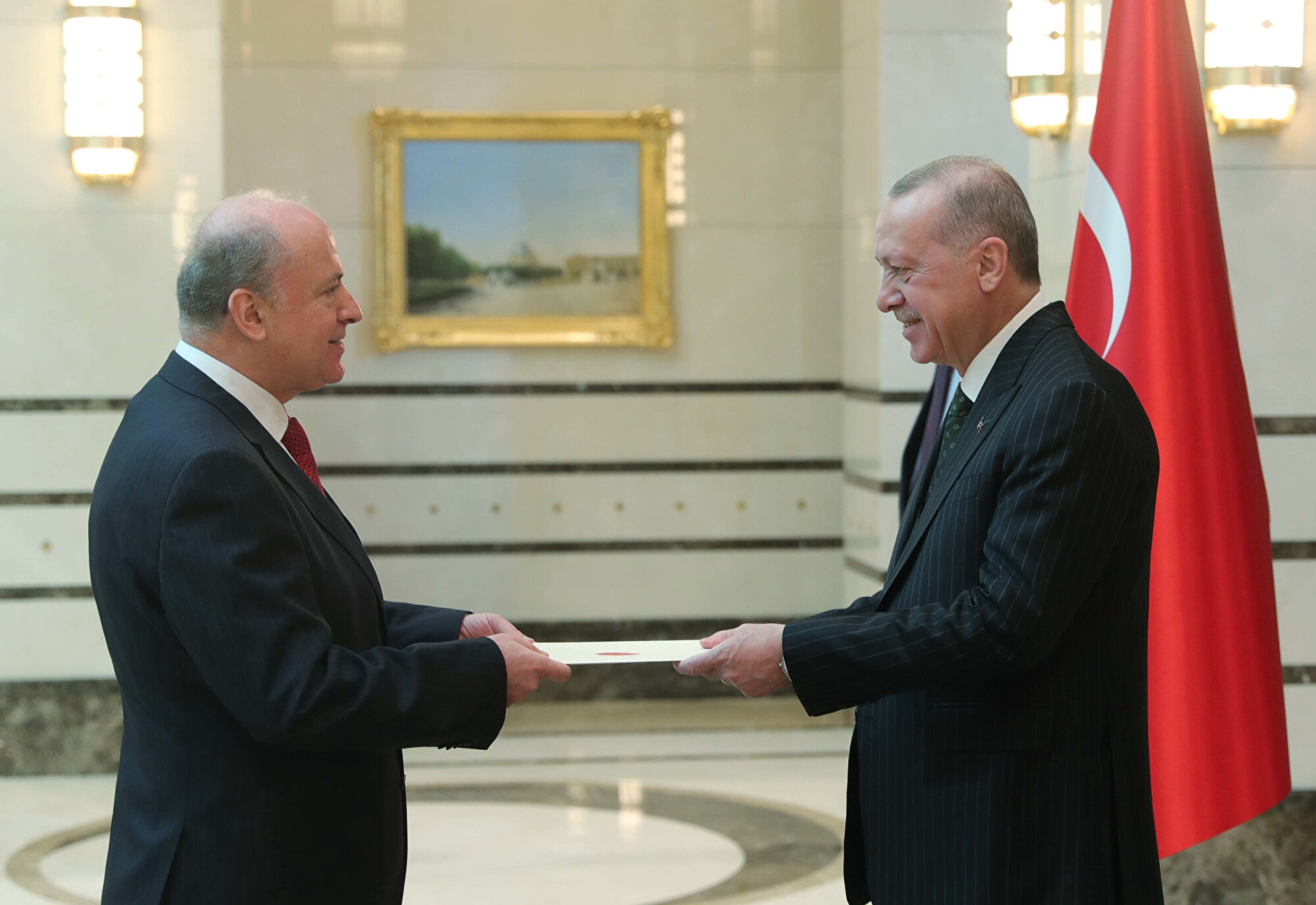 Cumhurbaşkanlığı Külliyesi'ndeki kabulde, Büyükelçi Ribo, Cumhurbaşkanı Erdoğan'a güven mektubunu sundu.
