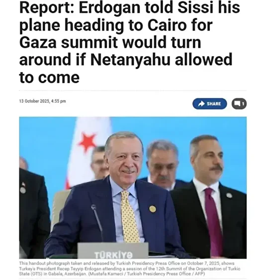 İsrael Hayom gazetesi, “Erdoğan’ın uyarısı işe yaradı” başlığıyla duyurduğu haberinde, Netanyahu’nun katılım haberinin Arap dünyasında tepkiyle karşılandığını belirtti. Habere göre, Erdoğan Netanyahu’nun zirveye gelmesi halinde uçağını geri çevireceğini bildirdi. İsrail gazetesi Times of Israel ise Erdoğan’ın Mısır Cumhurbaşkanı Sisi’yi bizzat arayarak uyarıda bulunduğunu ve birçok Müslüman ülkenin de zirveyi boykot etme tehdidinde bulunduğunu yazdı.