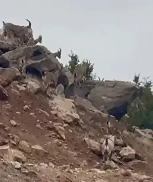 Bölgeden geçen vatandaşlar tarafından cep telefonu kamerasıyla kaydedilen görüntülerde, sayıları oldukça fazla olan keçilerin kayalık alanlarda toplu halde dolaştığı görüldü. Koruma altındaki dağ keçileri bir süre sonra gözden kayboldu.