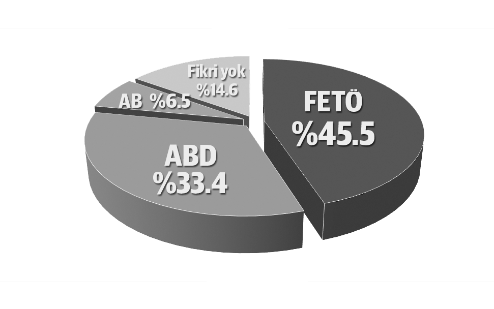 Denge Araştırma Şirketi’nin yaptığı ankete göre, vatandaş darbenin arkasında FETÖ ve ABD’nin olduğunu düşünüyor. Vatandaşın yüzde 45,5’i ‘FETÖ’, yüzde 33,4’ü ‘ABD’ cevabını verdi. Halkın yüzde 45,9’u darbe girişimini “vatan hainliği-ihanet” olarak tanımladı.