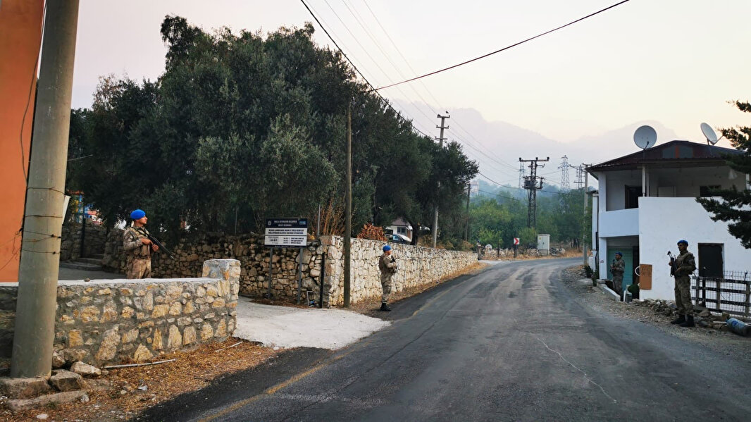 Muğla’nın Datça ilçesindeki orman yangına havanın aydınlanması ile birlikte müdahale yeniden başlarken askerlerin de boşaltılan evlerin önünde ve sokaklarda nöbet tuttuğu görüldü.