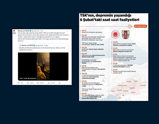 tarafından hazırlanan '19-20 Şubat Dezenformasyon Bülteni' ile deprem sırasında görülen ışımalar, devletin afetzedelere yaptığı 10 bin TL’lik yardımlara haciz konulduğu, TOKİ’nin Konya'da yaptığı evlerin boş durduğu, depremin ardından askerin sokakta olmadığı, Kızılay’ın yardım kolilerinin açılarak içindeki malzemelerin Suriyeli derneğin kolilerine yerleştirildiği iddialarına cevap verildi.