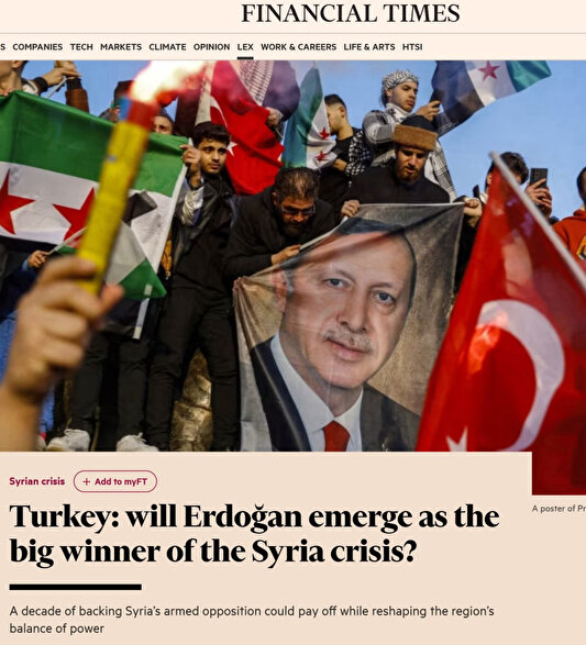 Suriye Milli Güçleri'nin operasyonuyla devrilen kanlı Baas rejiminin yıkılışında Türkiye'nin rolüne dikkat çeken dış basın Cumhurbaşkanı Recep Tayyip Erdoğan'ın artık İslam dünyasının doğal lideri olduğunu yazdı. Suriye'de muhaliflerden sonra en büyük kazananın Ankara olduğuna dikkat çekilen analizlerde "Esed'in devrilmesiyle Türkiye görmezden gelinemeyeceğini bir kez daha kanıtladı" denildi.