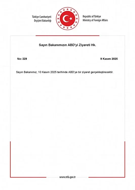 Bakanlığın açıklamasında, "Sayın Bakanımız, 10 Kasım 2025 tarihinde ABD’ye bir ziyaret gerçekleştirecektir." denildi.