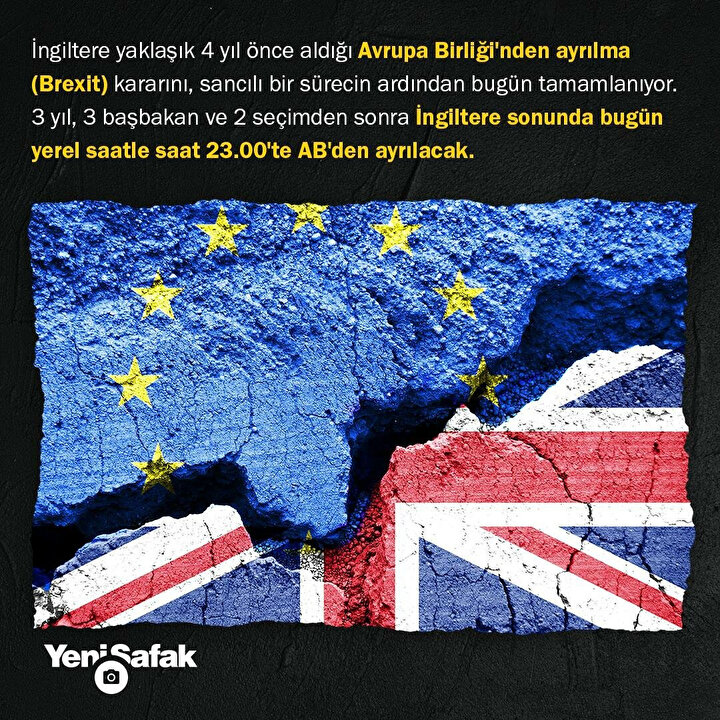 Bakanlıktan yapılan yazılı açıklamada, Birleşik Krallık'ın 31 Ocak itibarıyla Avrupa Birliği (AB) üyeliğinden resmen ayrılacağı ve böylelikle Haziran 2016'da düzenlenen referandumla başlayan sürecin tamamlanacağı belirtildi.