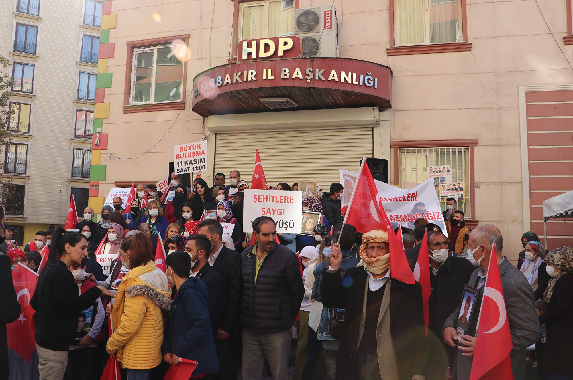 HDP İl Başkanlığı binası önünde başlayan ve Turgut Özal Bulvarı'nda devam eden yürüyüşte aileler, ellerinde Türk bayrağı, çocuklarının fotoğrafı ile "Artık yeter, düşün yakamızdan", "Kürt-Türk kardeştir, HDP kalleştir", "Türkiye nöbette" yazılı dövizler taşıdı.